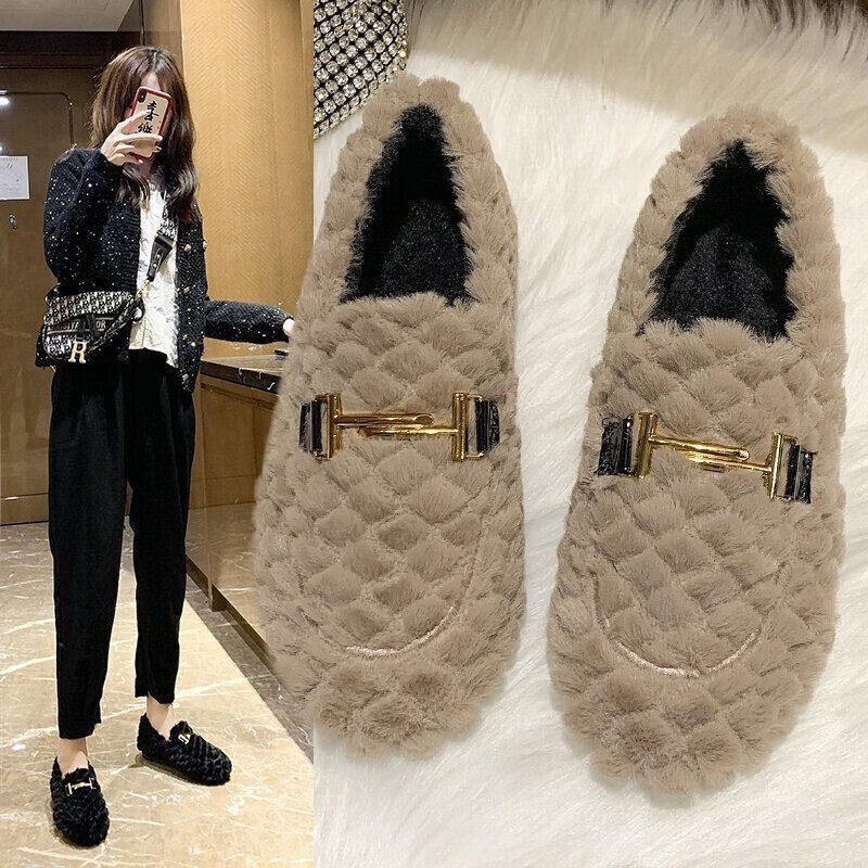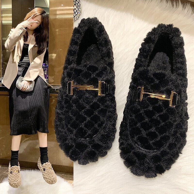 2025棉鞋女士秋冬学生保暖加绒毛毛韩版低帮平底懒人豆豆鞋防滑