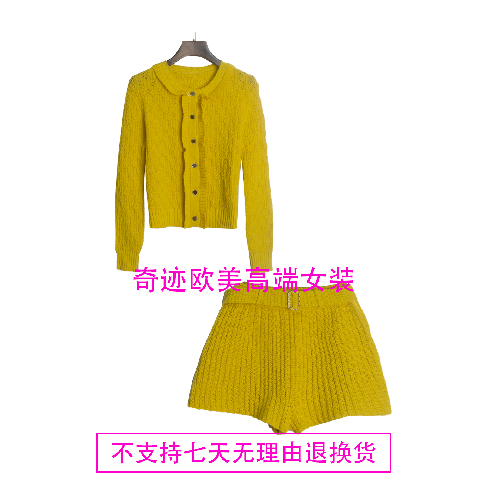 不退不换 原569 特惠199 25新款 金智妮同款 芥末黄针织开衫+短裤