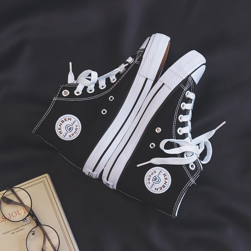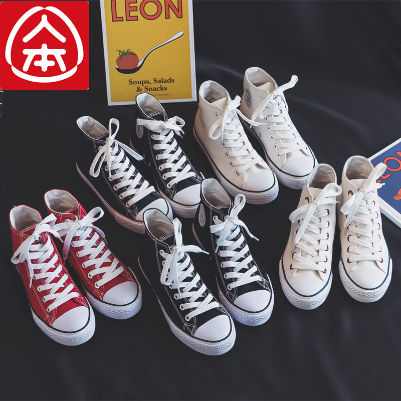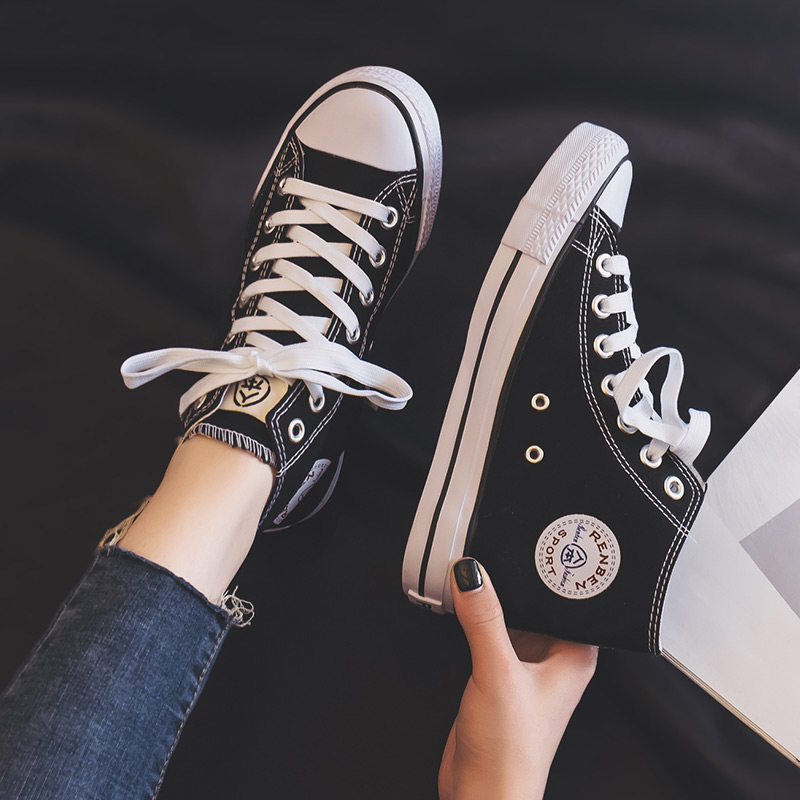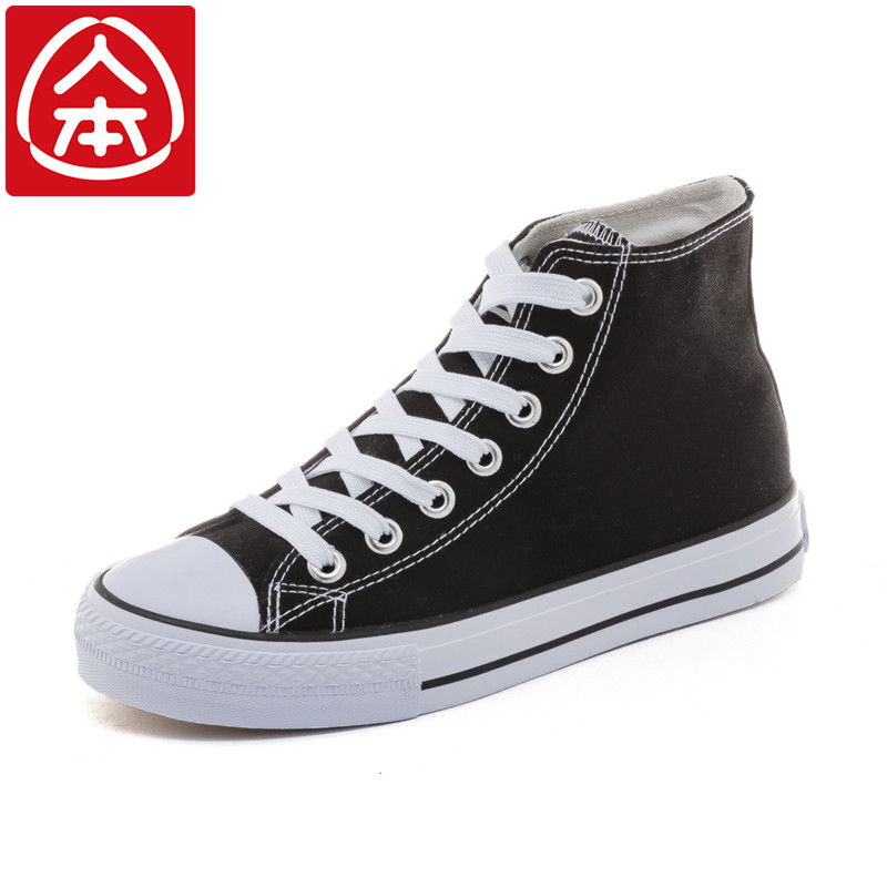 人本高帮帆布鞋女黑色秋季2025新款休闲鞋子韩版潮百搭学生板鞋