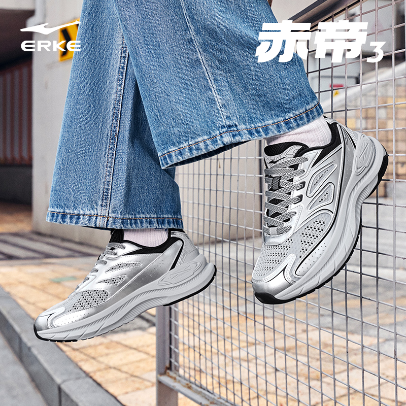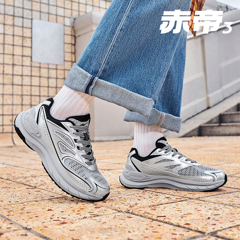 赤帝3鸿星尔克运动男鞋2026冬季新款复古银色厚底增高休闲老爹鞋