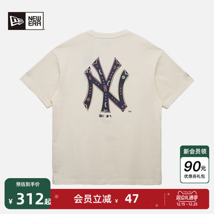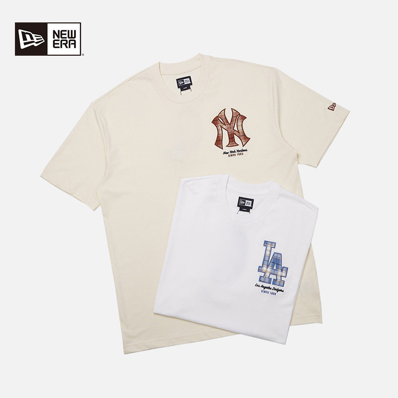 New Era纽亦华秋季新款MLB短袖T恤情侣NY刺绣复古透气半袖宽松潮