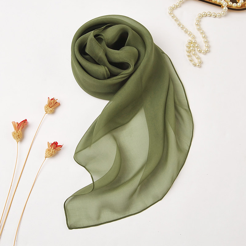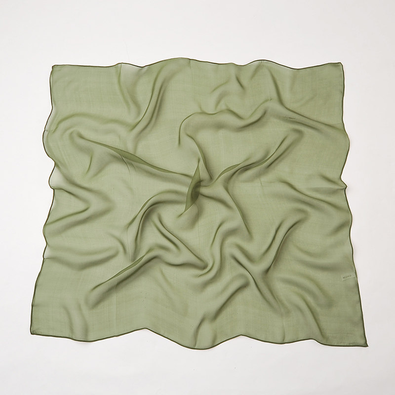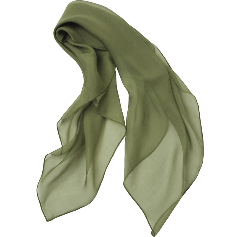 【微瑕】100%桑蚕丝纯色军绿真丝小方巾女士高档春秋薄款丝巾围巾