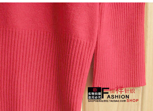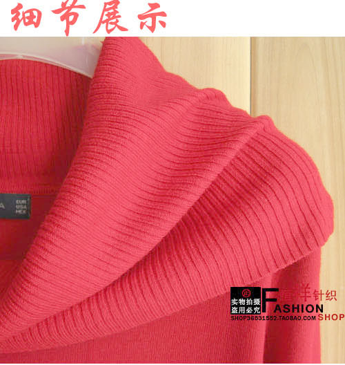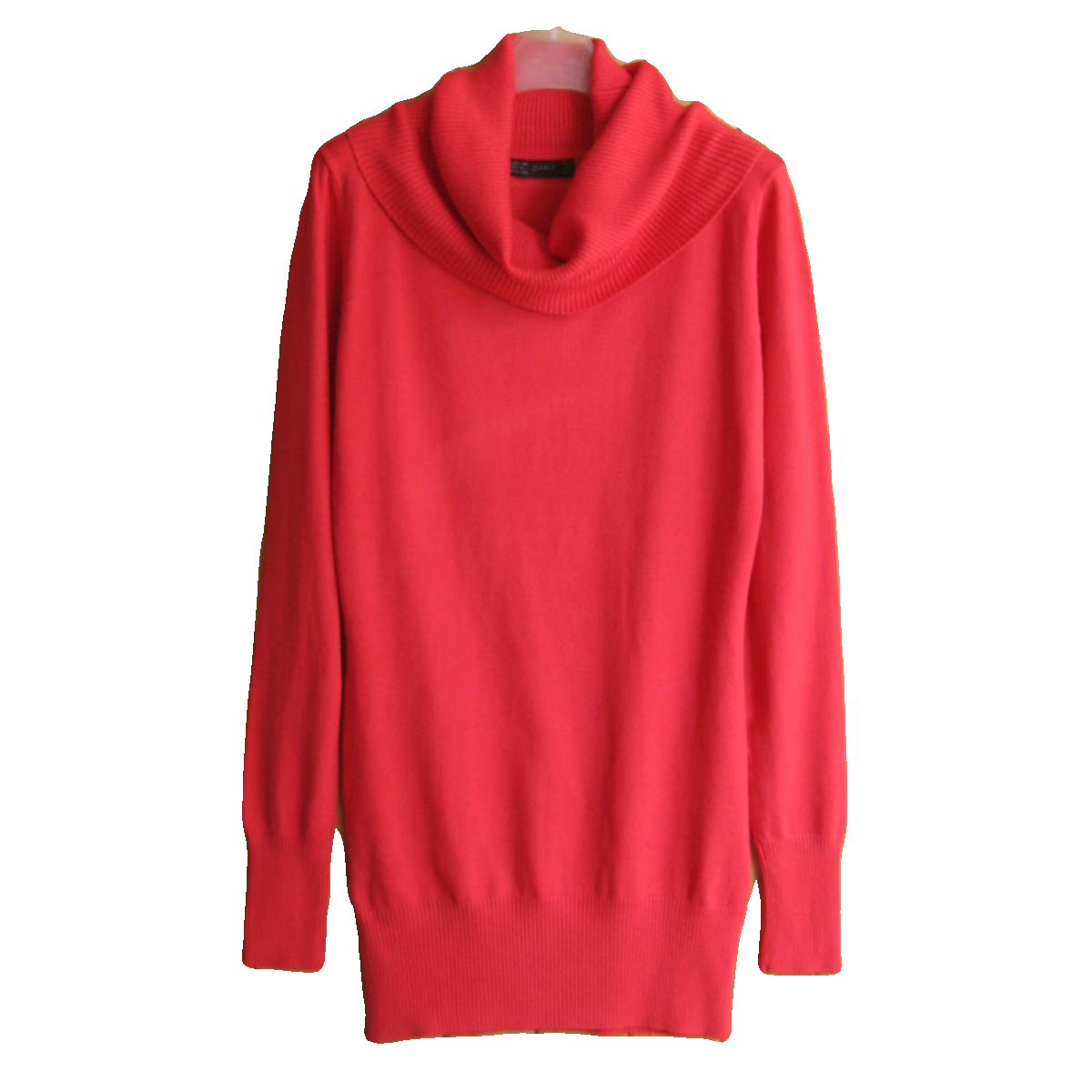 春秋女士毛衣长袖中长款修身丝光棉针织衫大盆领纯色打底衫薄款