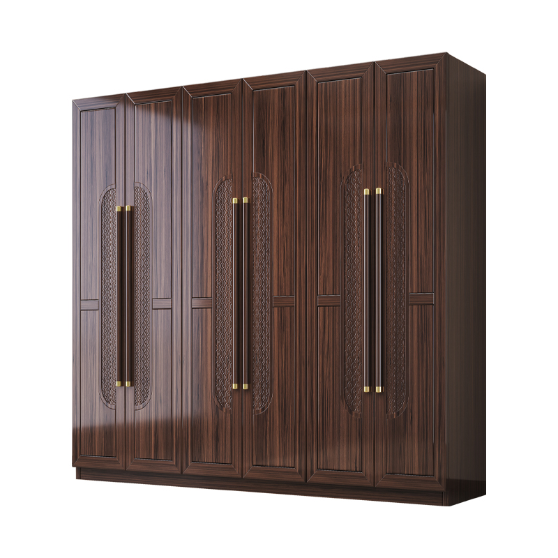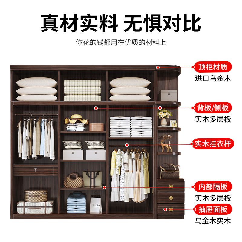 新中式乌金木实木衣柜家用卧室大容量三四五六门大衣橱收纳储物柜