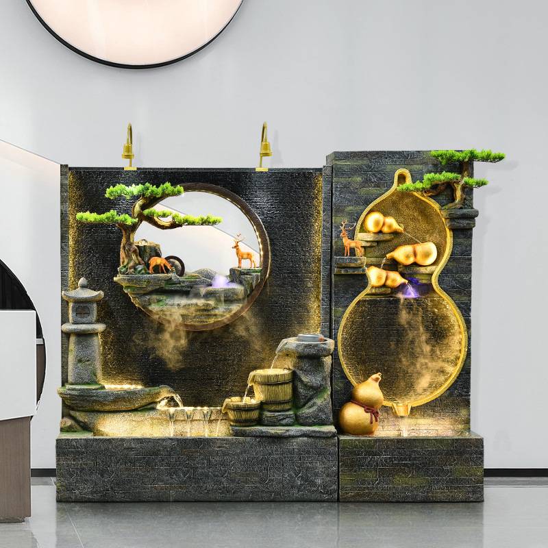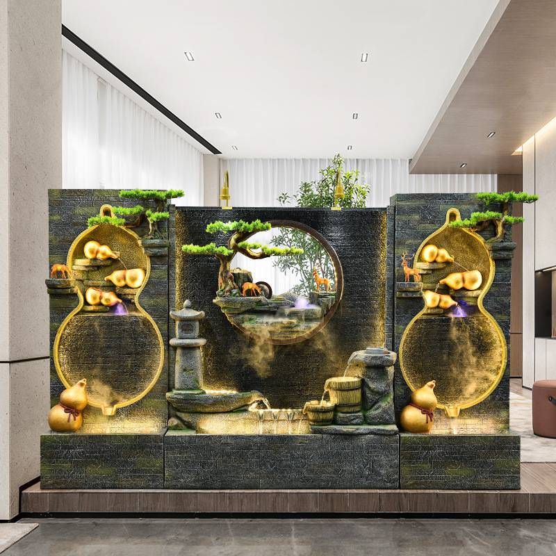 大型水幕墙流水墙屏风公司客厅别墅庭院落地景观喷泉葫芦装饰摆件