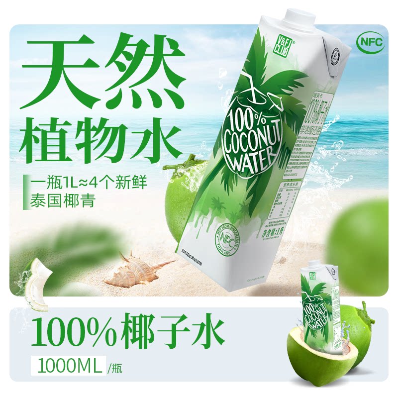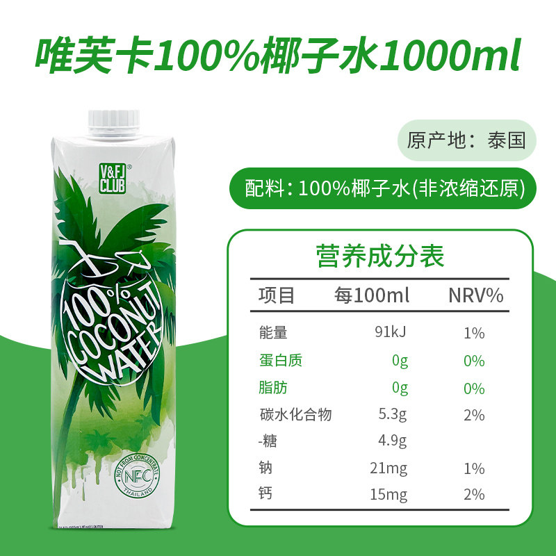 唯芙卡泰国进口100%椰子水纯椰青水孕妇NFC椰汁含电解质饮料1L