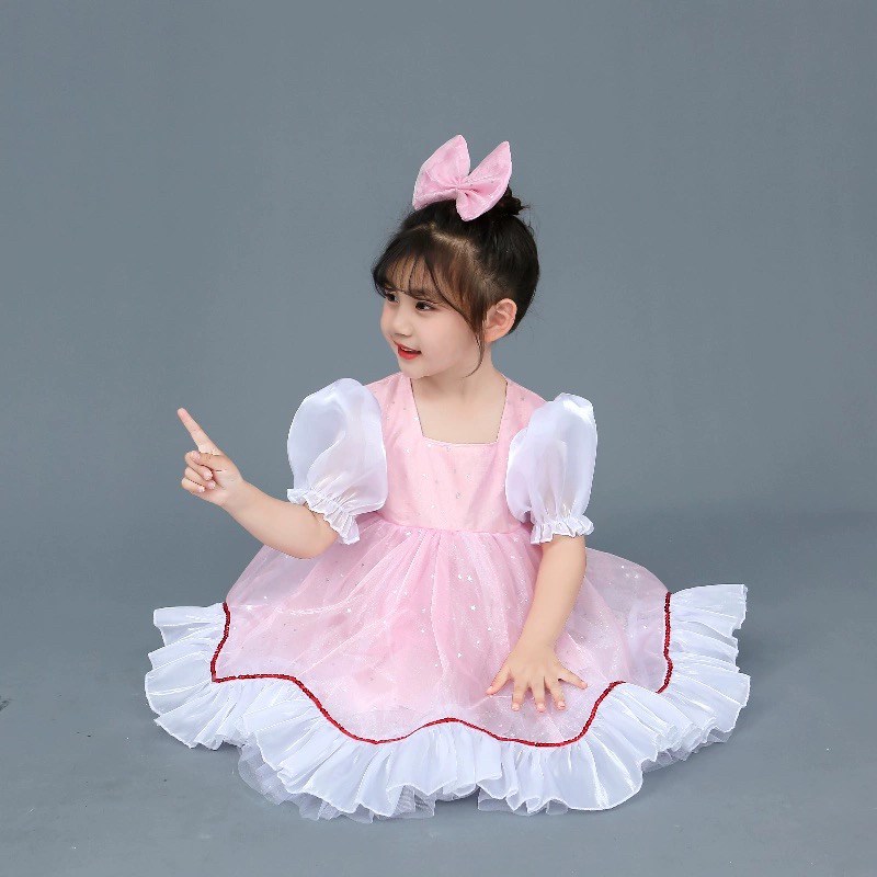 六一儿童舞蹈服女童蓬蓬裙幼儿园演出服可爱粉色公主裙纱裙表演服