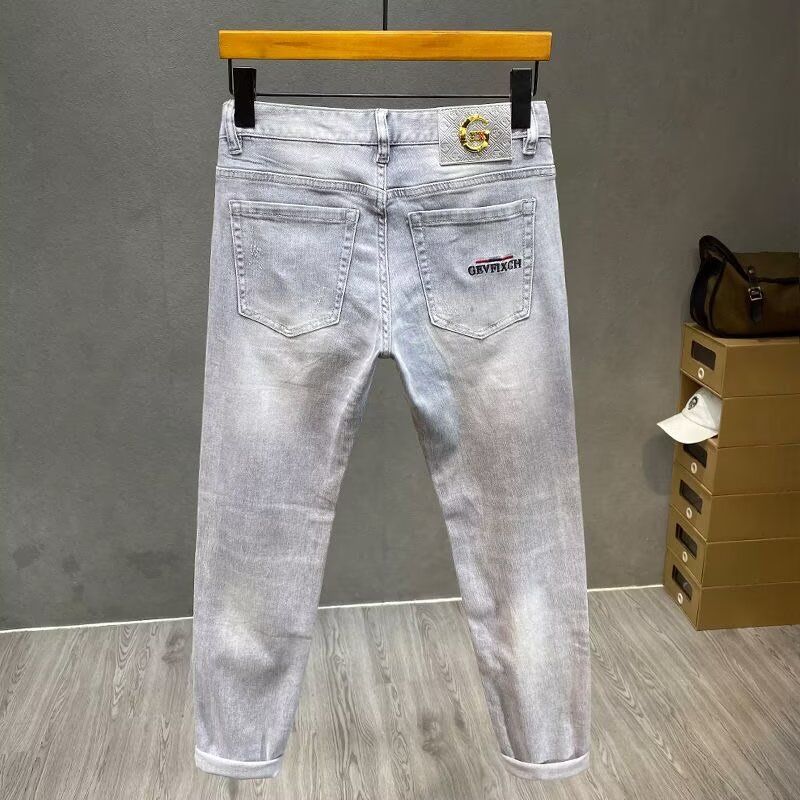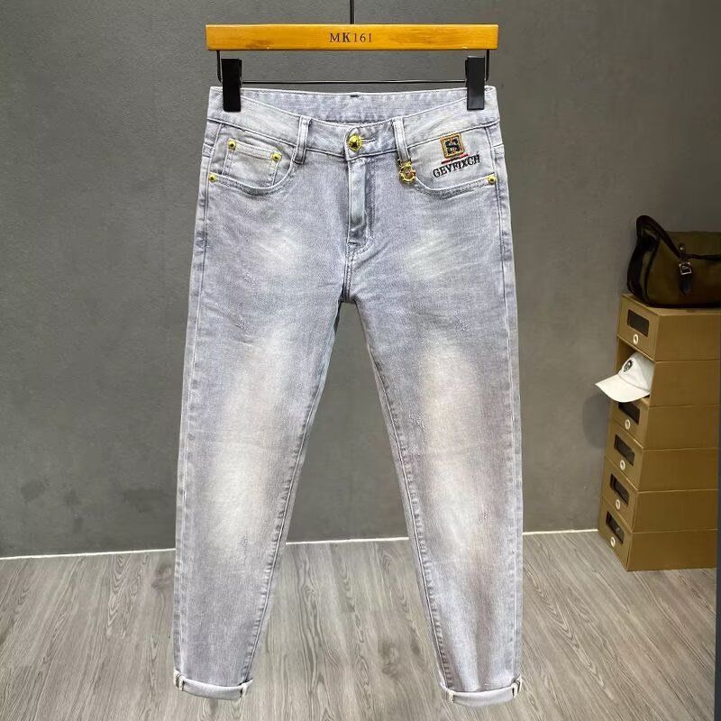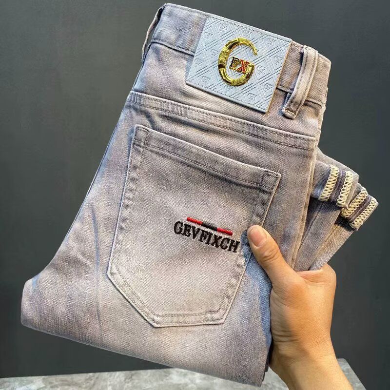 秋季潮牌刺绣牛仔裤男2024新款修身小脚潮流百搭男士弹力休闲长裤