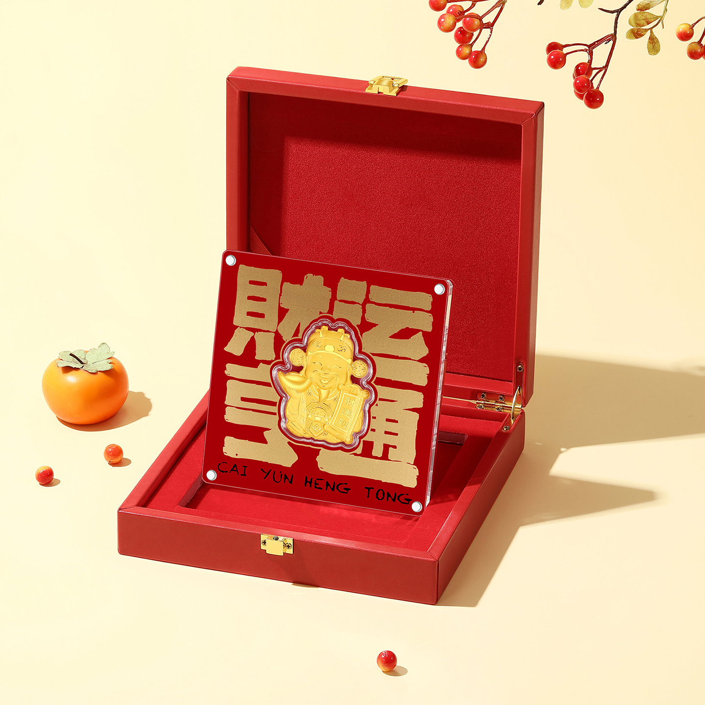 潮宏基好事发生足金摆件黄金财神爷金币投资金财运亨通纪念礼物