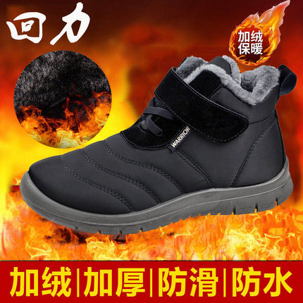 回力雪地靴男鞋冬季加绒加厚保暖棉鞋中老年防滑防水老人二棉短靴
