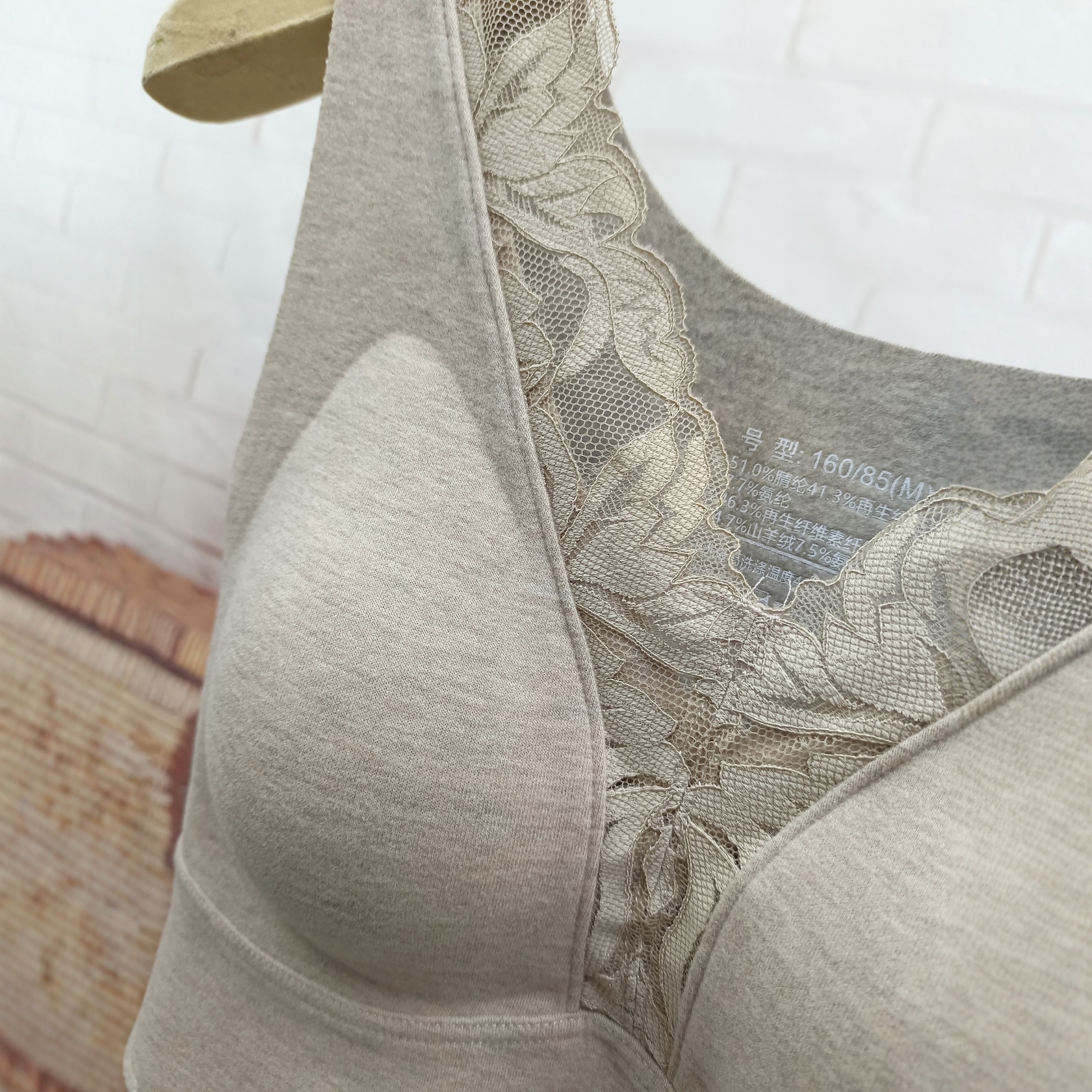 羊绒桑蚕丝智暖滋养蕾丝文胸背心女士柔软亲肤秋冬季打底保暖内衣