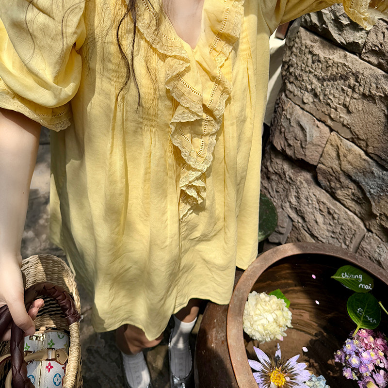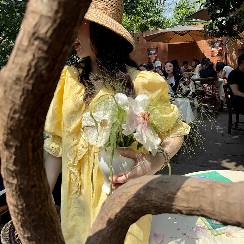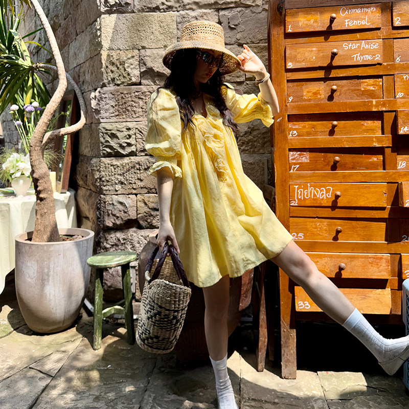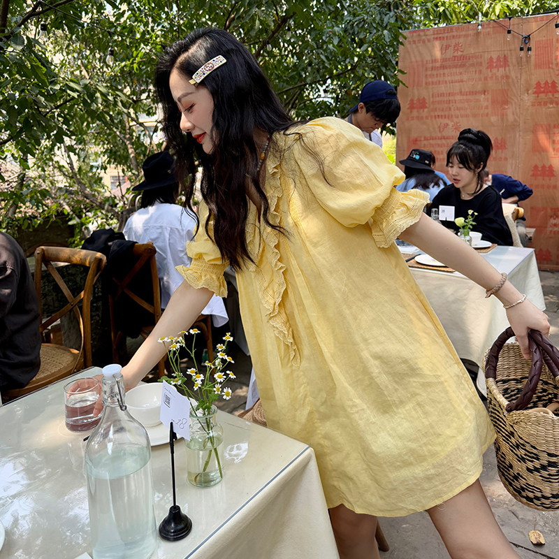 heidy海蒂 长崎夏日 木耳边蕾丝宽松麻棉连衣裙女2026初夏穿搭