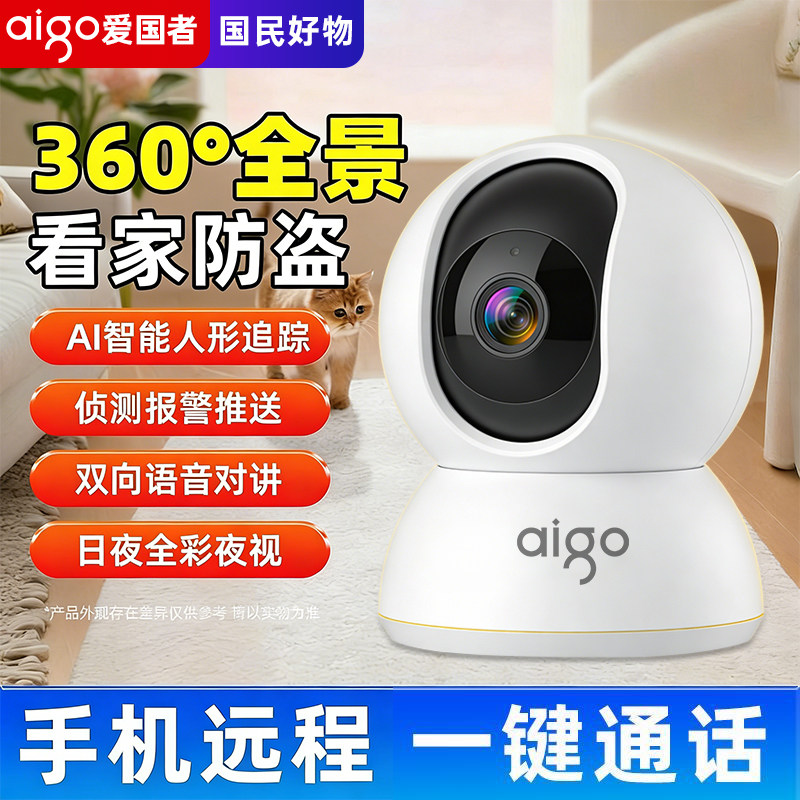 爱国者360全景双云台超清摄像头远程监控WiFi云回放家用手机远程