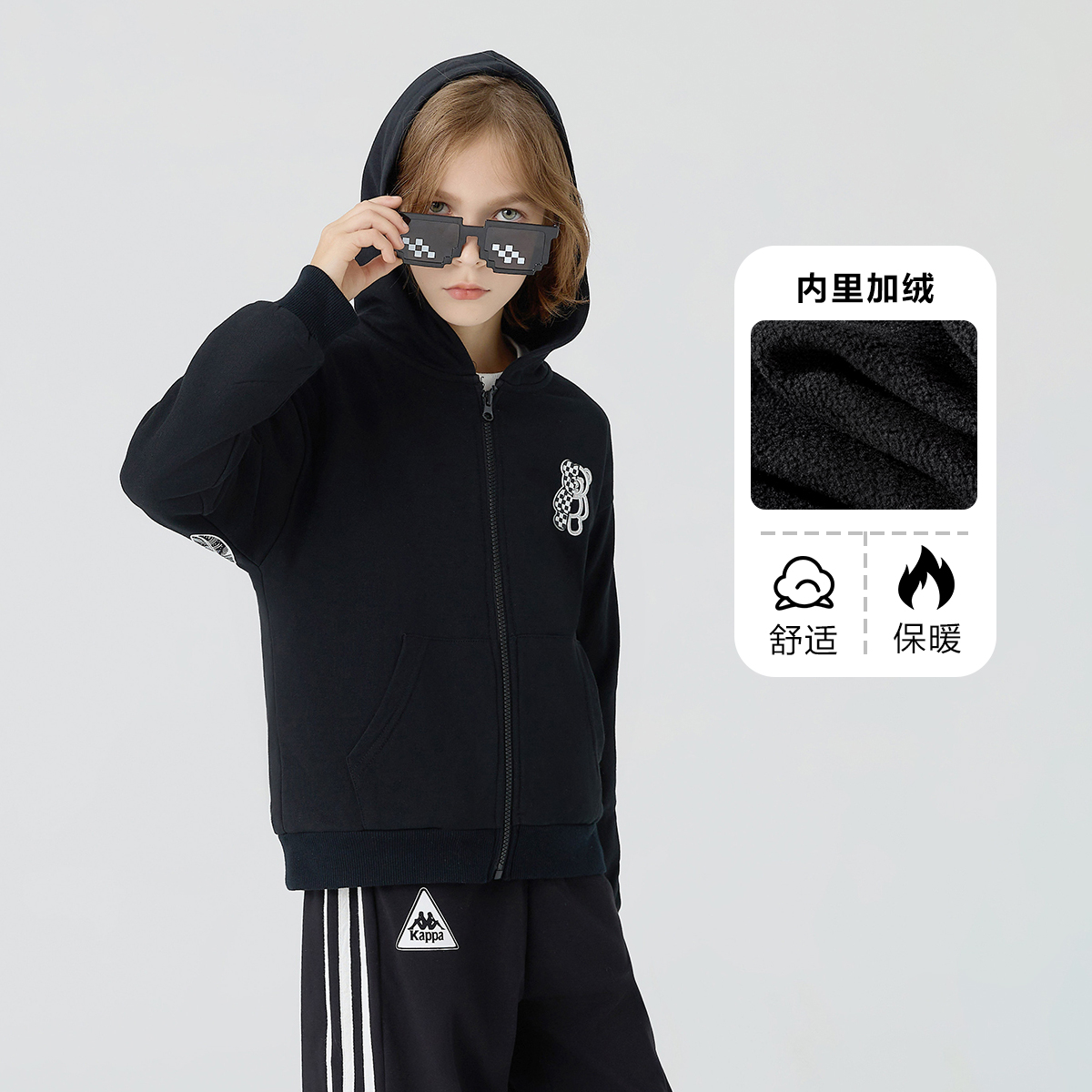 kappa男童加绒卫衣连帽开衫外套