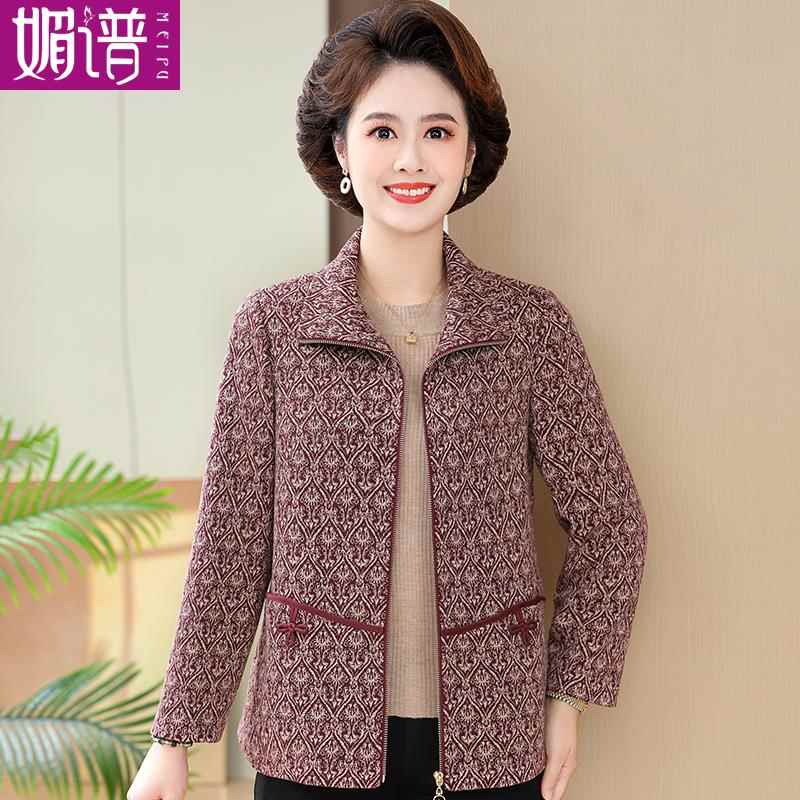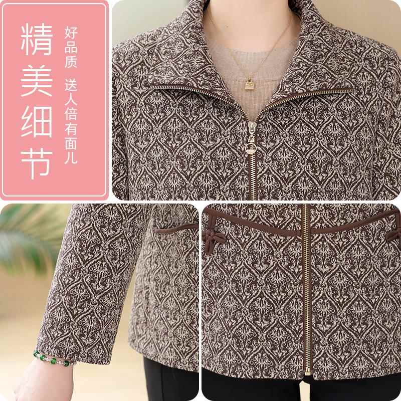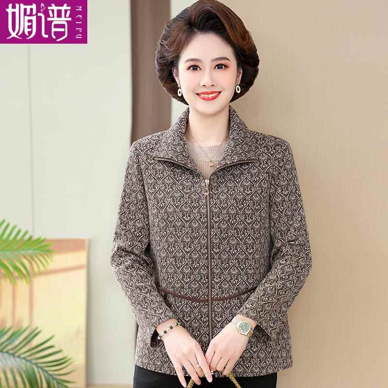 妈妈春装洋气翻领拉链毛呢外套2025新款中老年女士夹克上衣薄高档