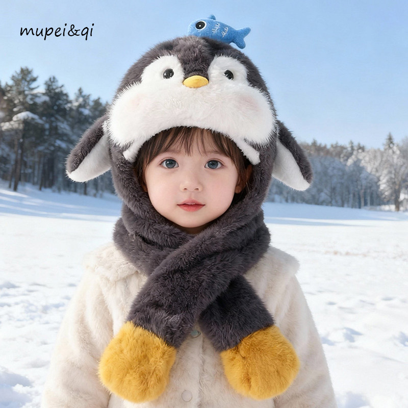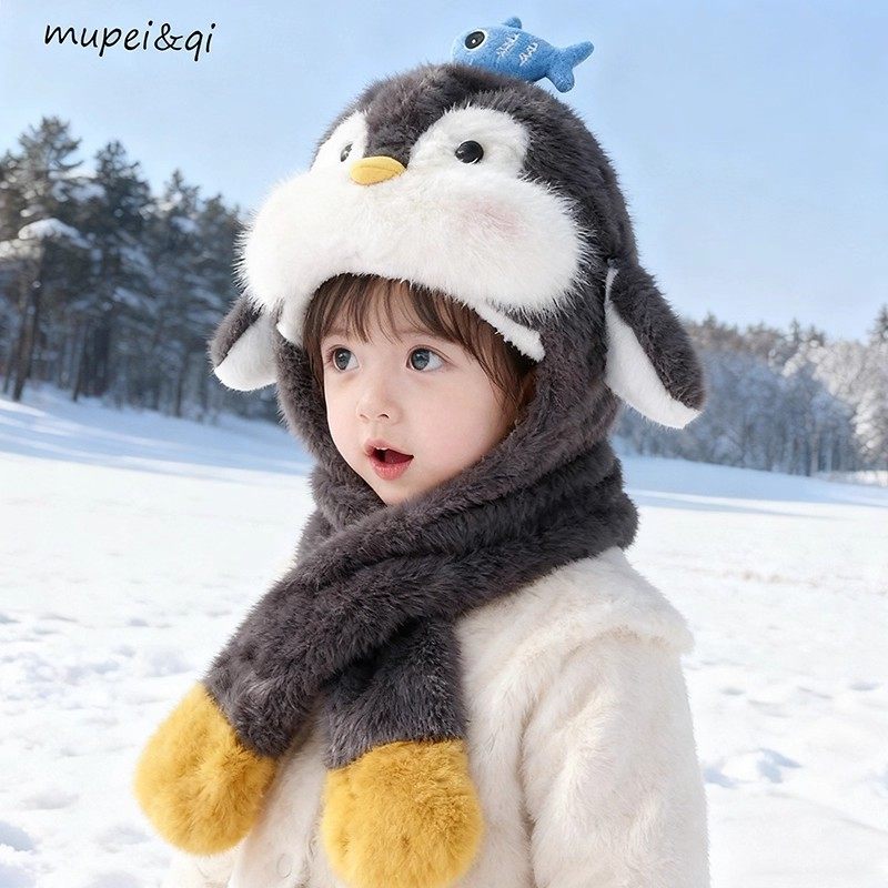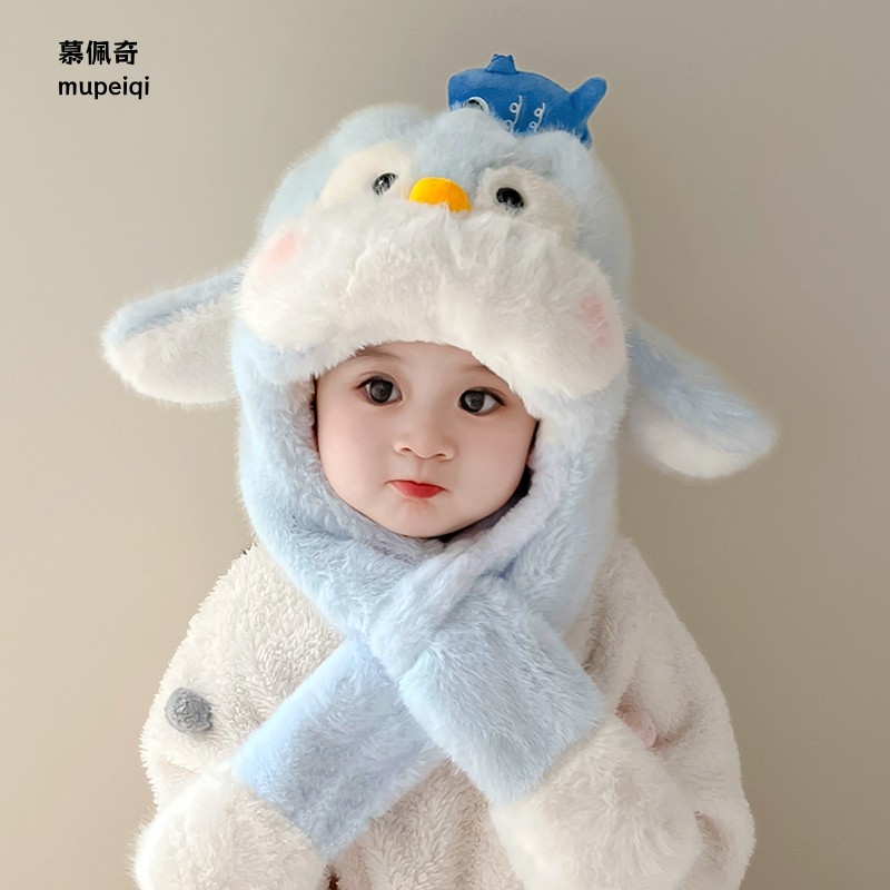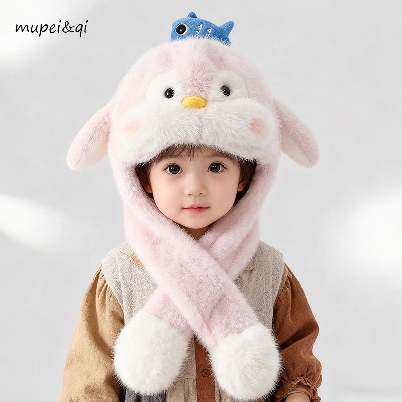 宝宝帽子冬季会动的耳朵企鹅毛绒加厚男女童一体儿童护耳保暖秋冬