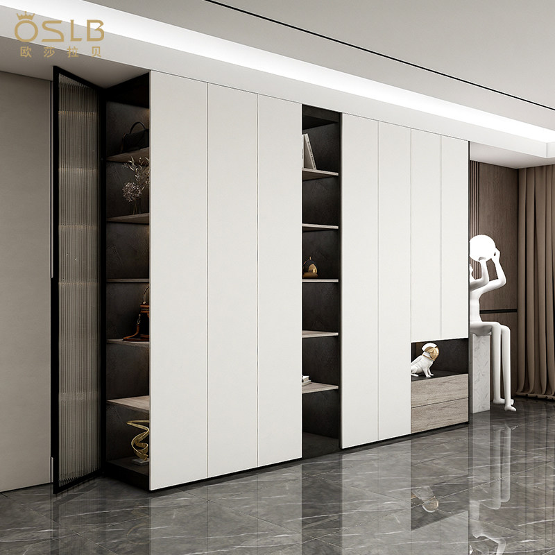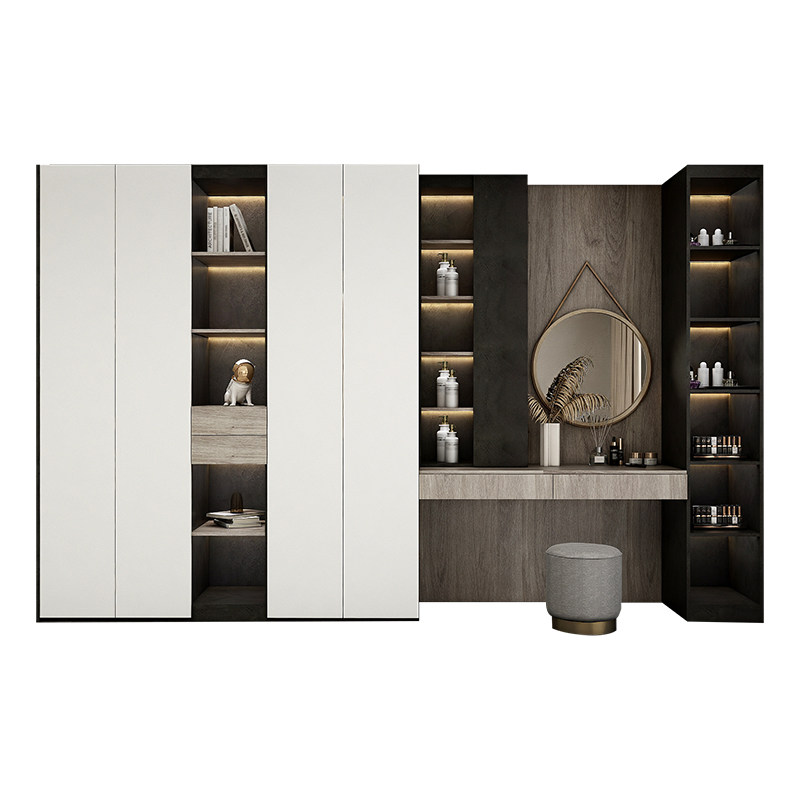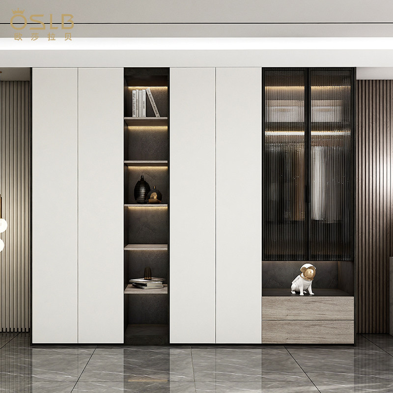 轻奢白色实木衣柜小户型家用卧室原木风整体组合衣橱一门到顶定制