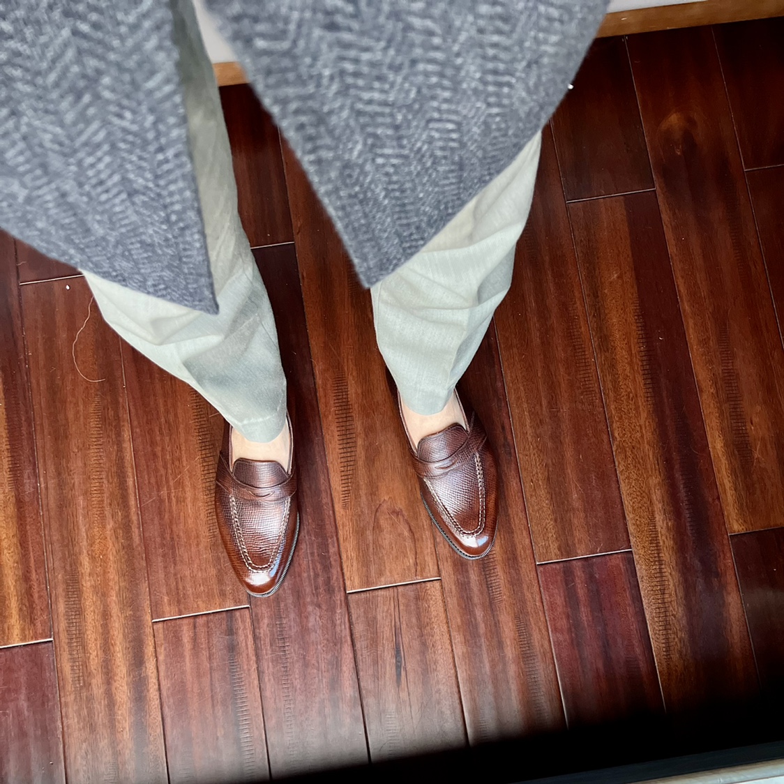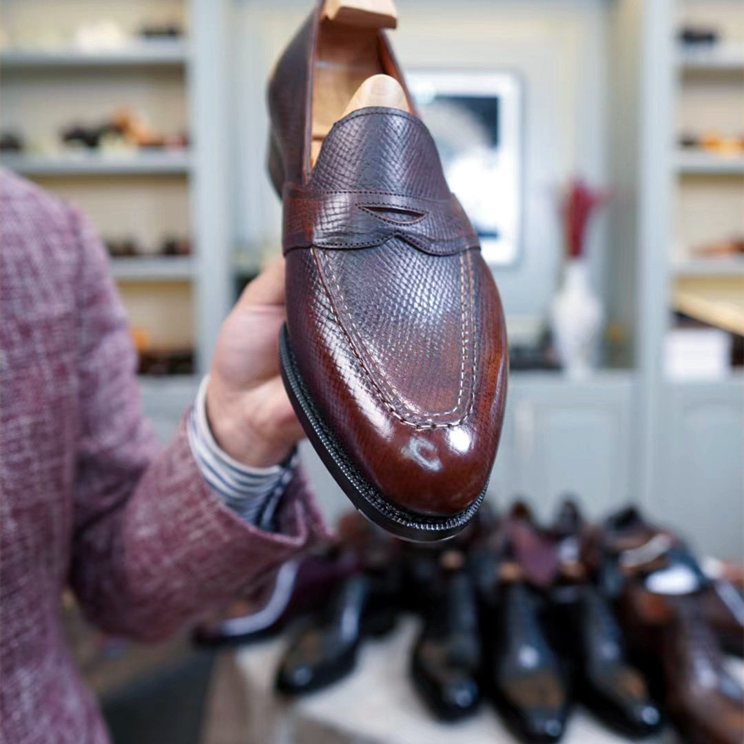 沉船皮咖啡色渐变乐福鞋固特异男鞋真皮底小圆头头层进口皮一脚蹬