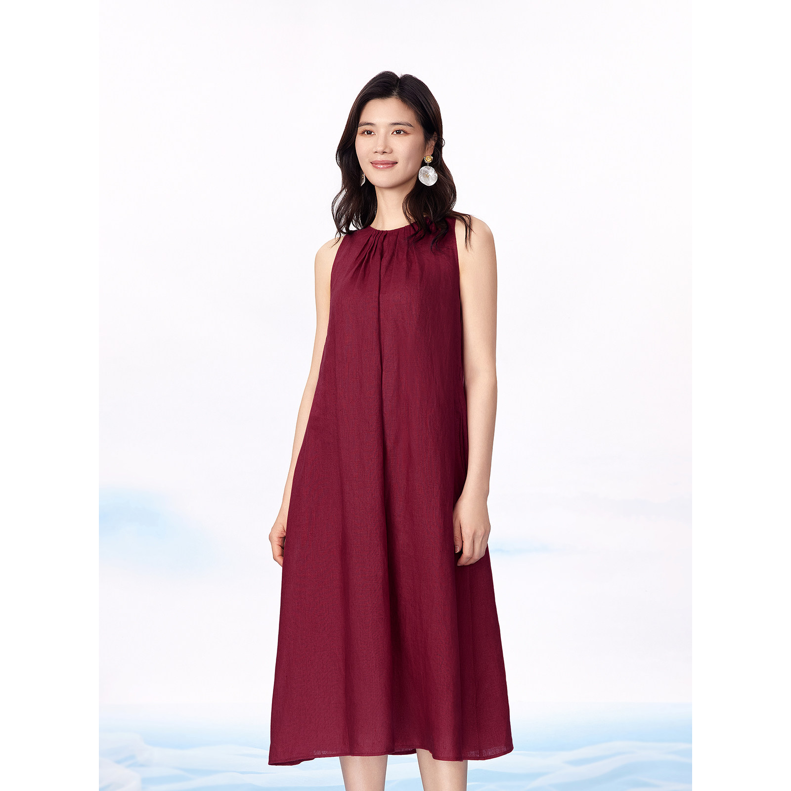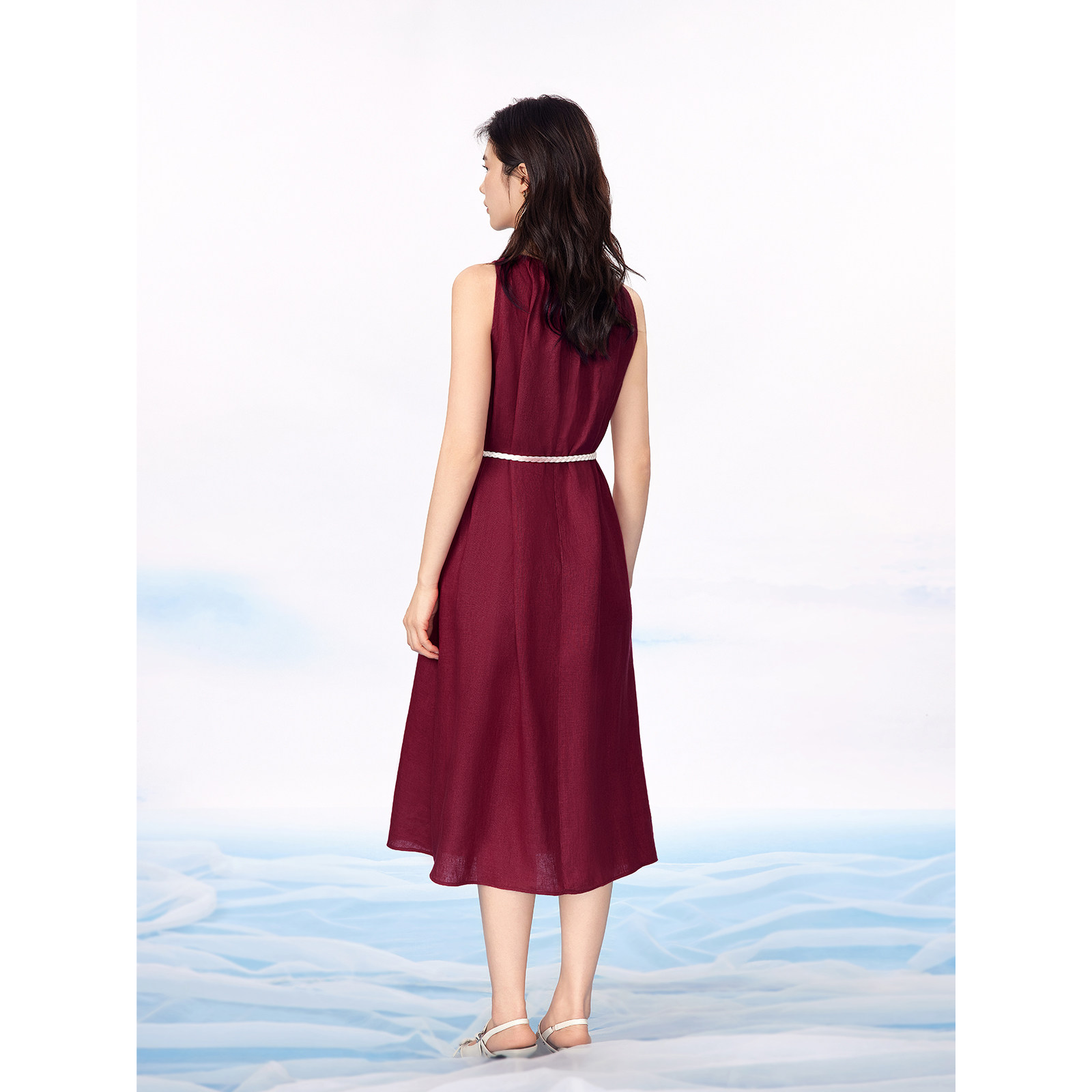【休闲度假风】BBLLUUEE/粉蓝衣橱2025夏装新款亚麻无袖连衣裙女