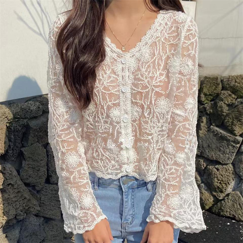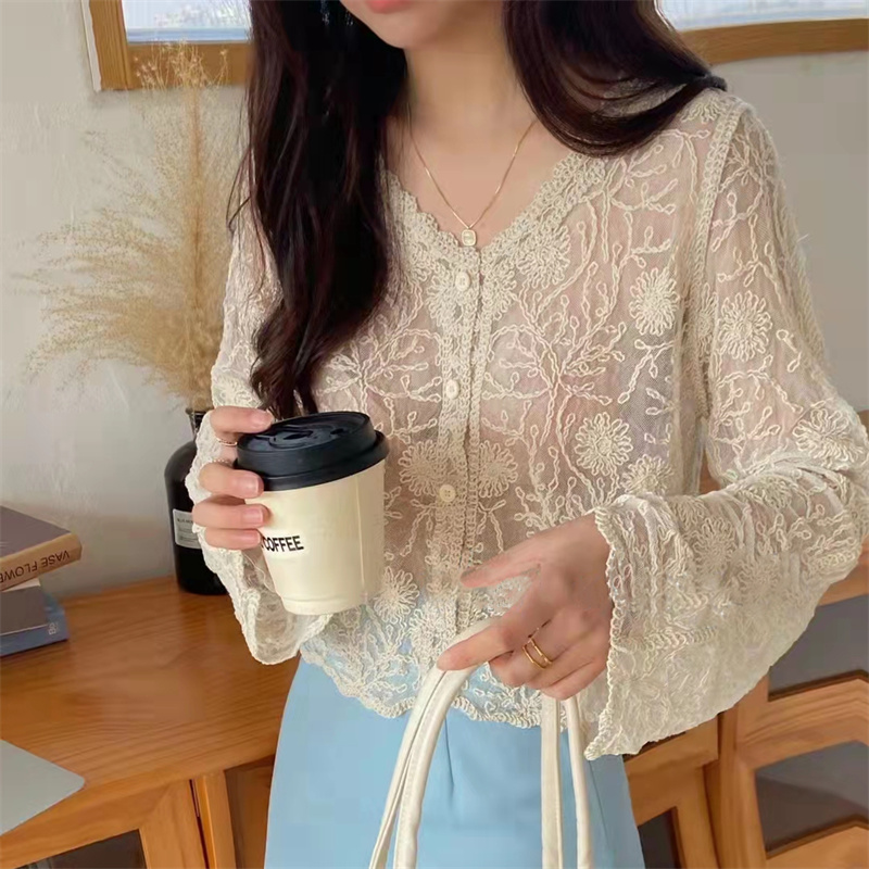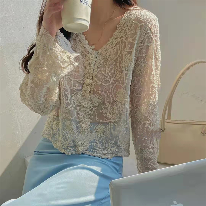 泰国小众镂空上衣V领防晒衫女秋配吊带外搭背心洋气宽松薄款外套