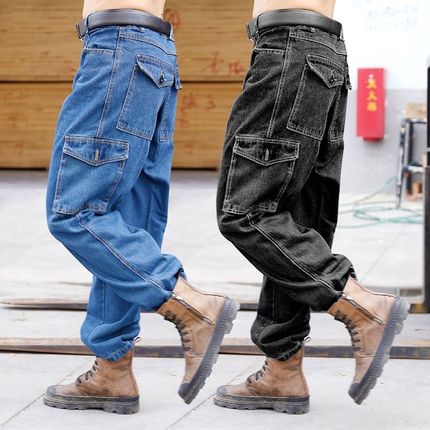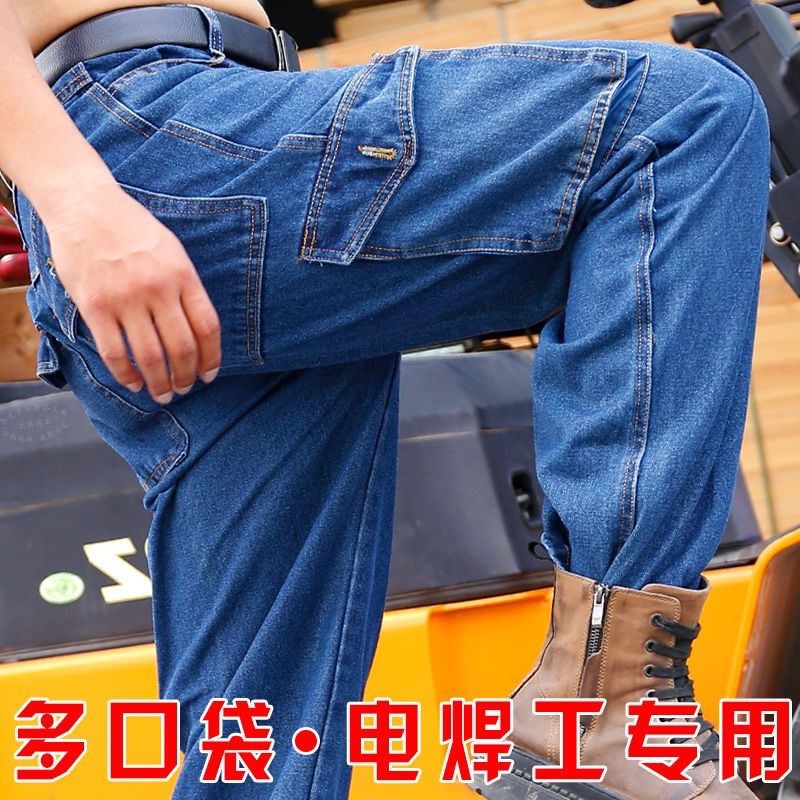 牛仔裤加厚防烫耐磨电焊工作服长裤男裤子汽维修劳保高腰宽松大码