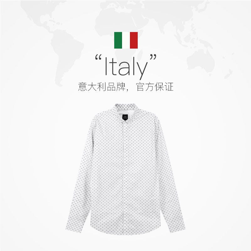 【自营】阿玛尼 AX 男士棉质微弹长袖翻领暗休闲衬衫3DZC25 ZNEAZ
