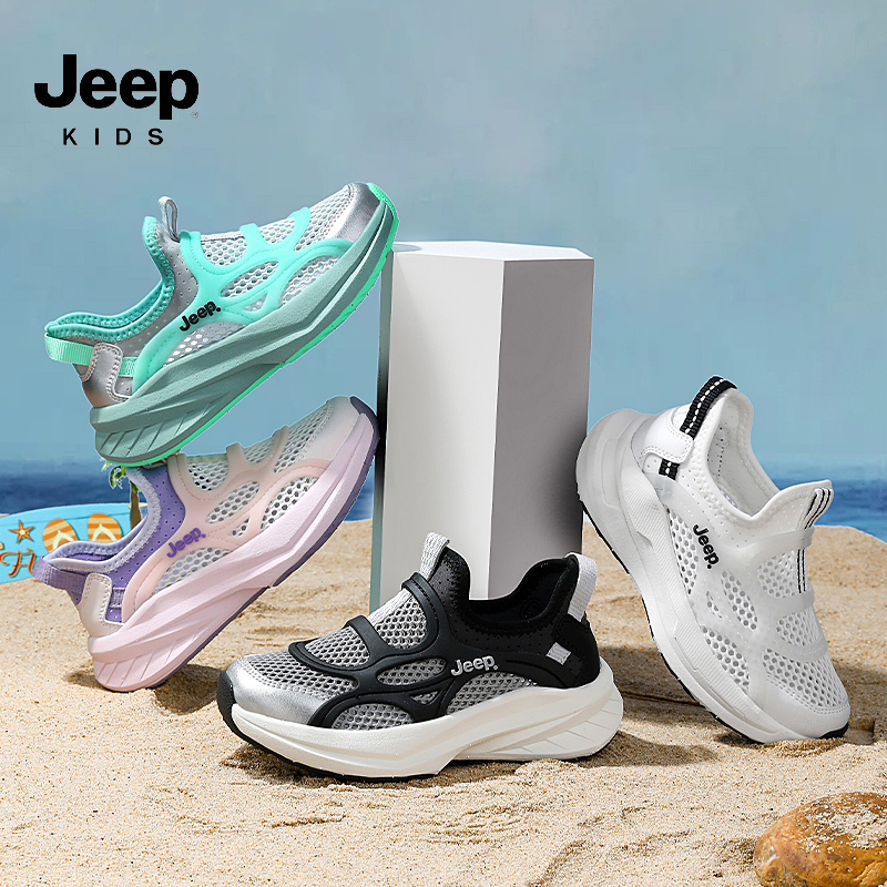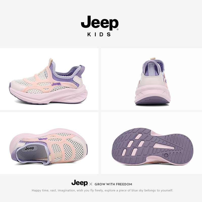 jeep女童跑步网鞋网面运动鞋一脚蹬2025新款夏季透气童鞋儿童鞋子