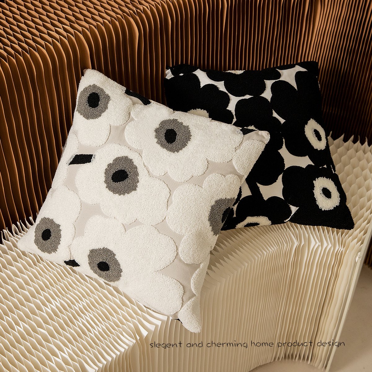 轻奢北欧刺绣花朵抱枕套样板间沙发靠枕床头靠垫家居汽车靠背
