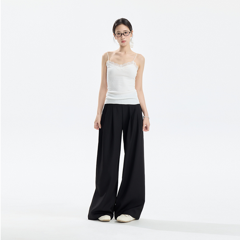 iNSLiiSA 黑色西装裤女夏薄款高腰宽松显瘦阔腿休闲直筒垂感长裤