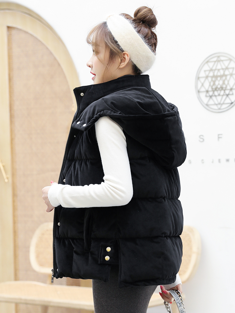 羽绒棉马甲女短款2025秋冬新款宽松连帽金丝绒棉服坎肩面包服外套