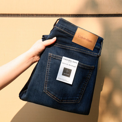 正品Calvin Klein男色复古蓝修身直筒牛仔裤水洗磨白简约休闲长裤