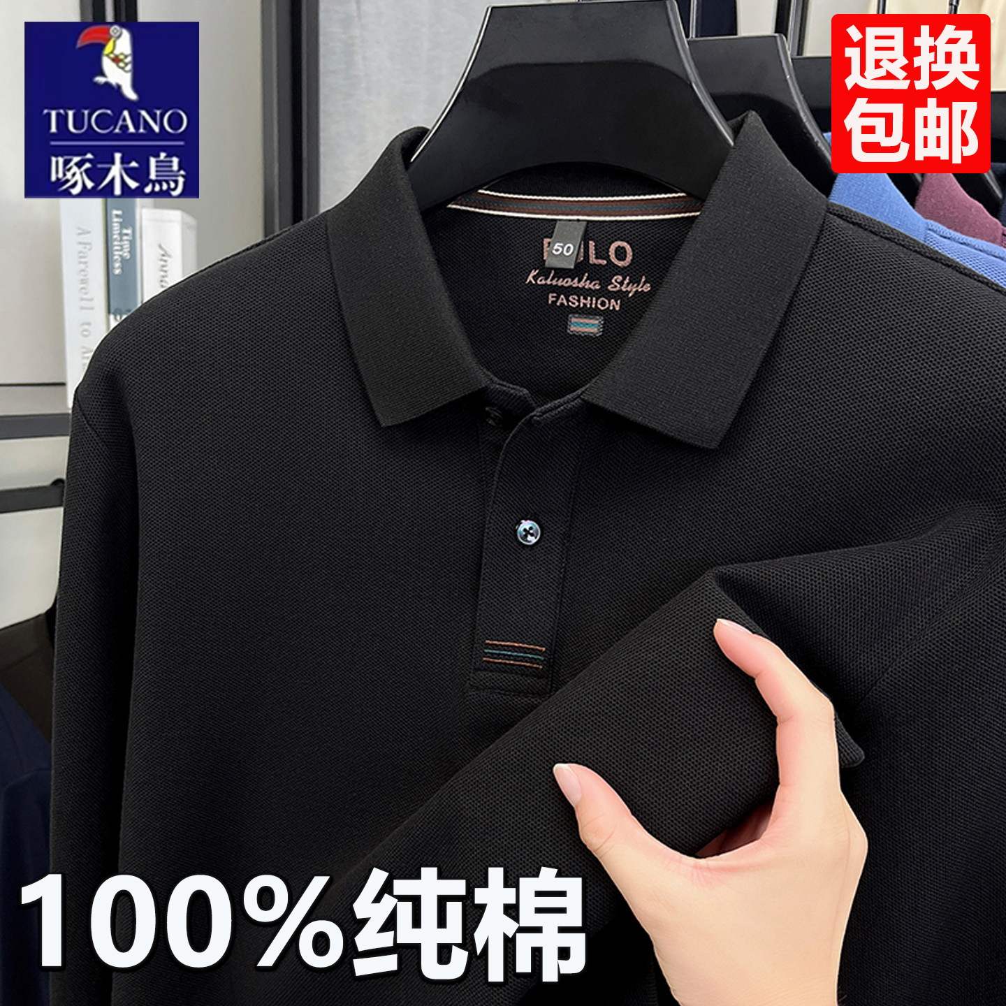 啄木鸟男士长袖纯棉t恤polo衫2025秋季新款中老年上衣爸爸打底衫T