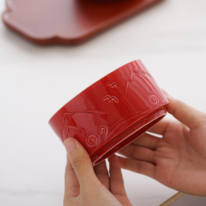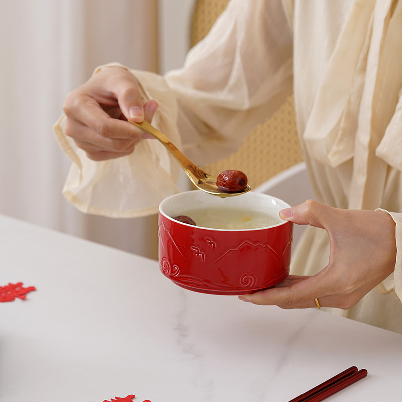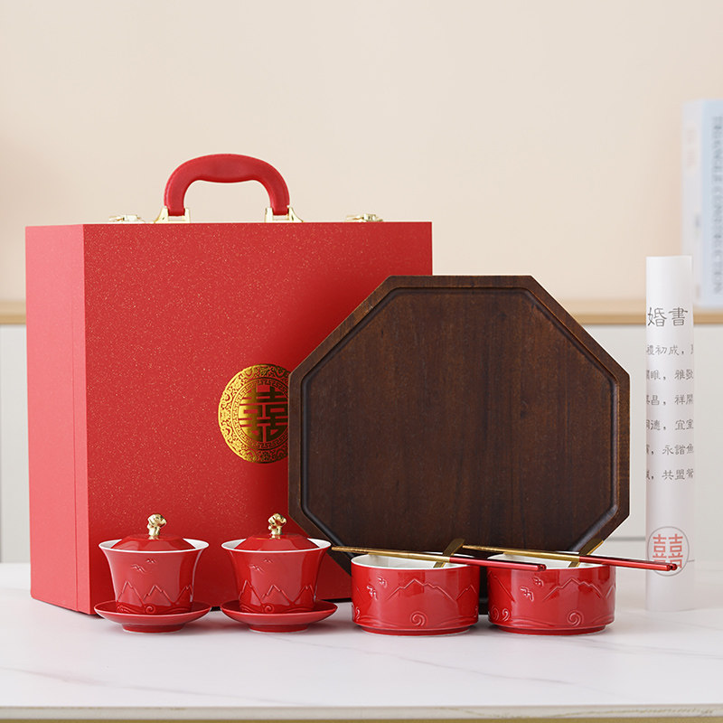 仲夏知己结婚喜碗一对敬茶杯套装订婚陪嫁红色对碗筷女方敬酒茶碗