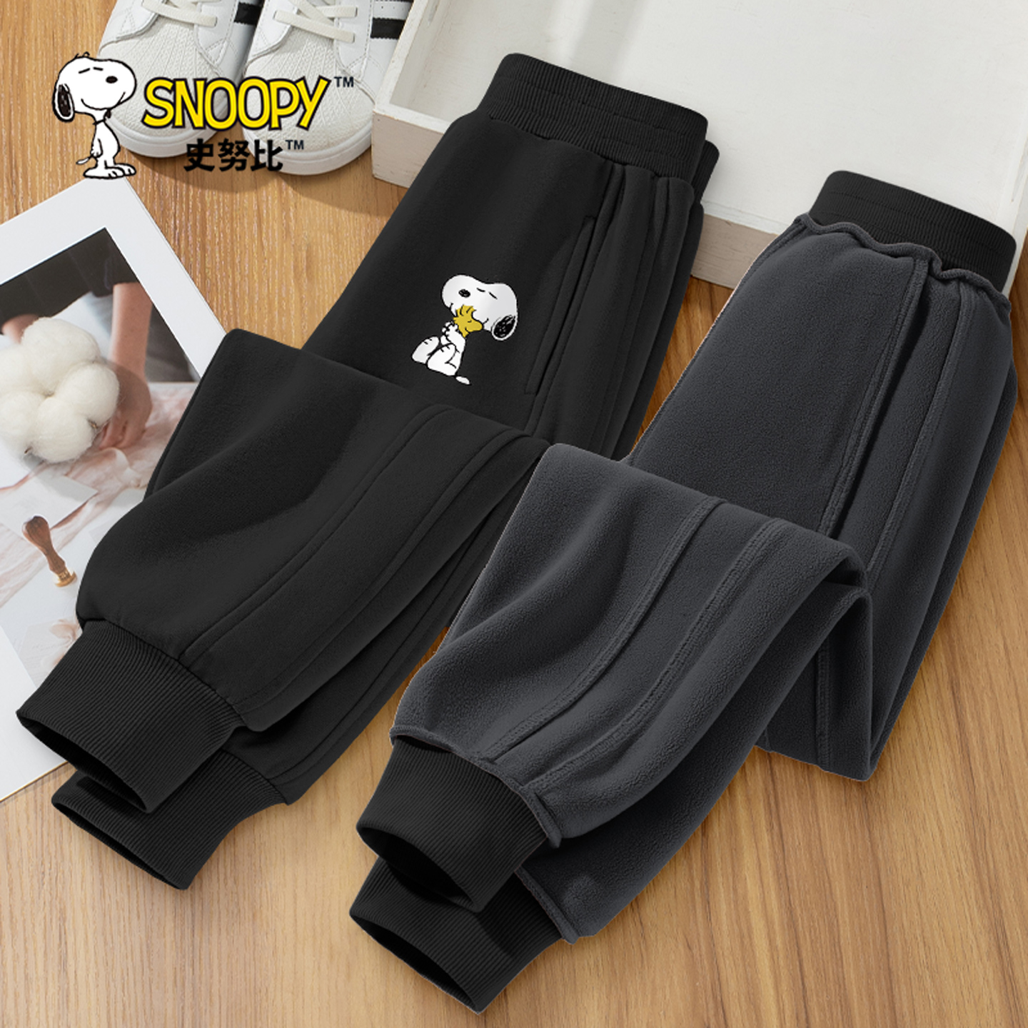 史努比男童一体绒裤子2025新款男大童秋冬棉裤儿童加绒加厚卫裤冬