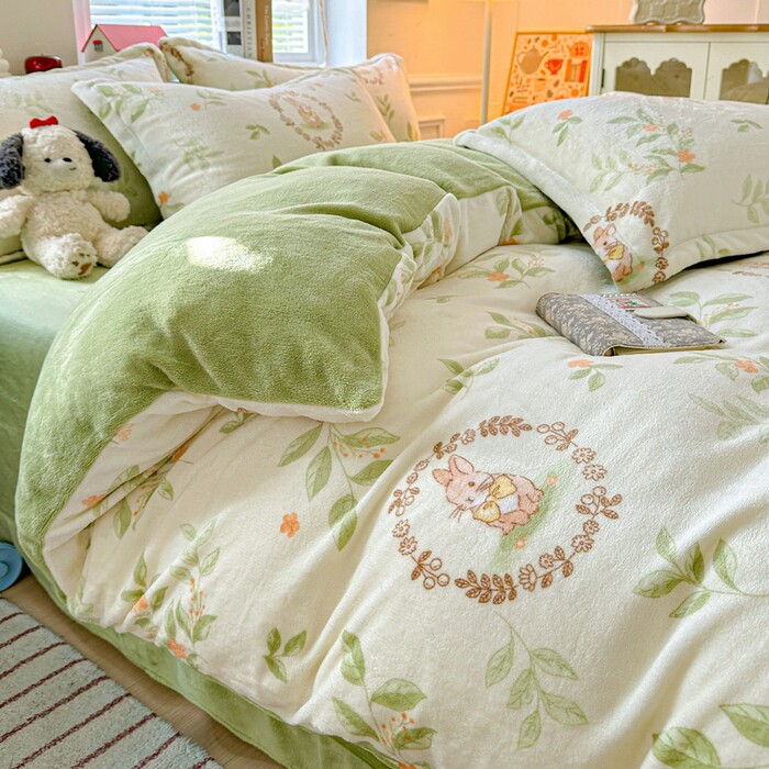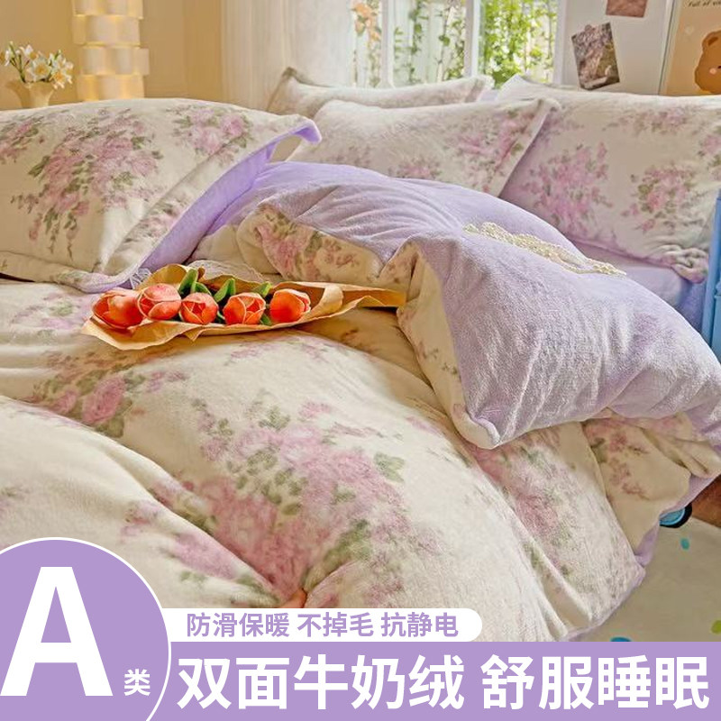 ins牛奶绒四件套被罩单件冬季法莱绒冬天四件套珊瑚绒被套三件套4