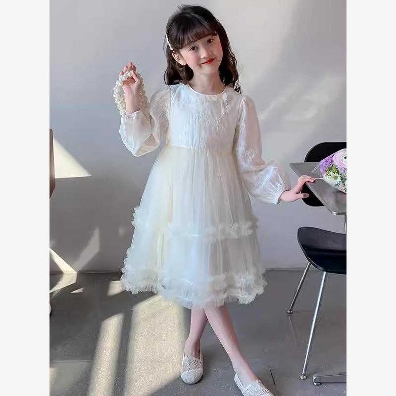 法国BADNUT女童连衣裙春秋2025新款儿童公主裙长袖网纱蓬蓬裙