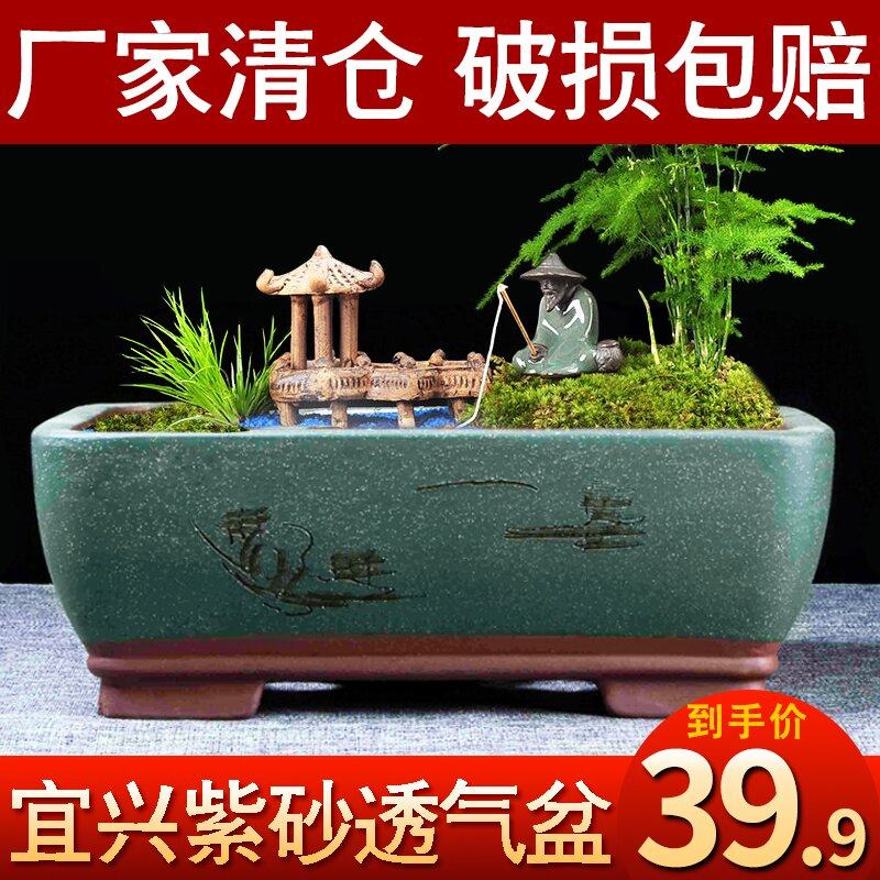 宜兴紫砂花盆长方形清仓特价盆景盆简约绿植兰花老桩特大号陶瓷盆