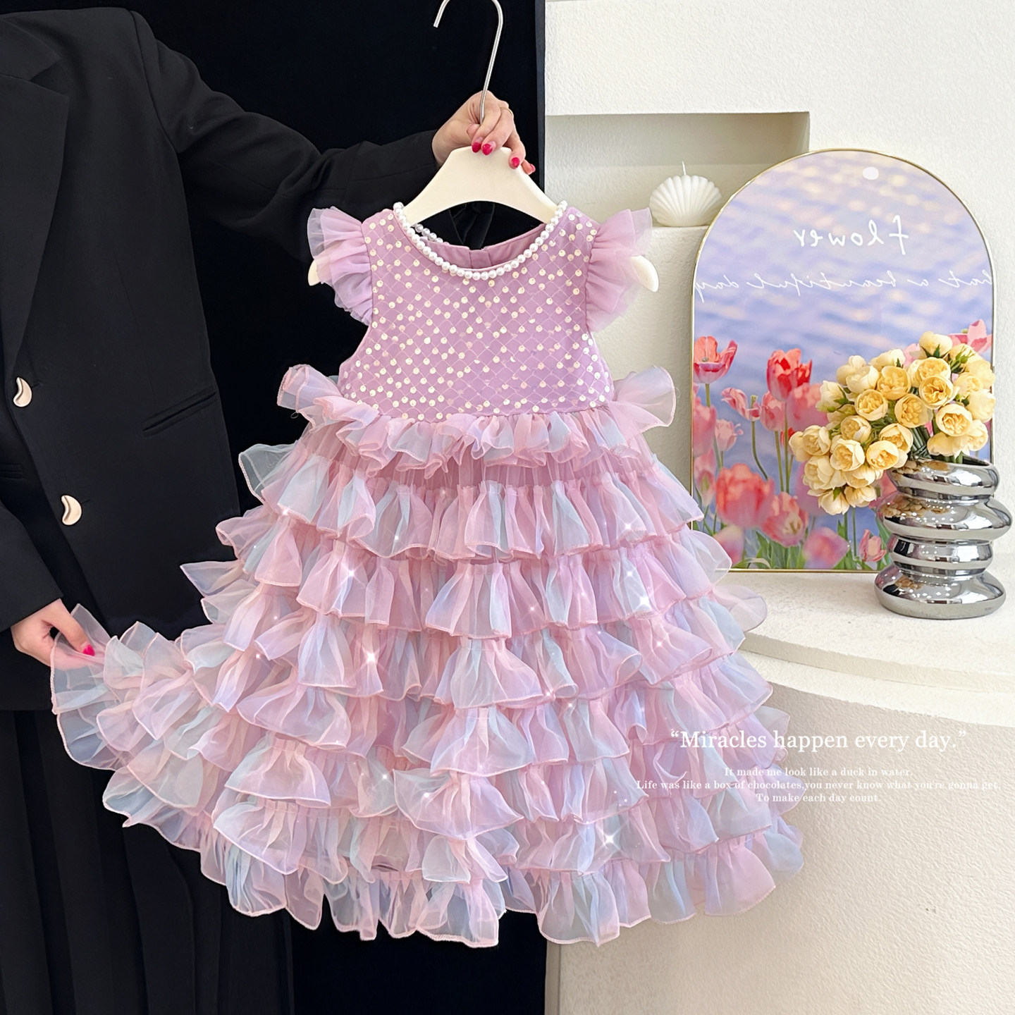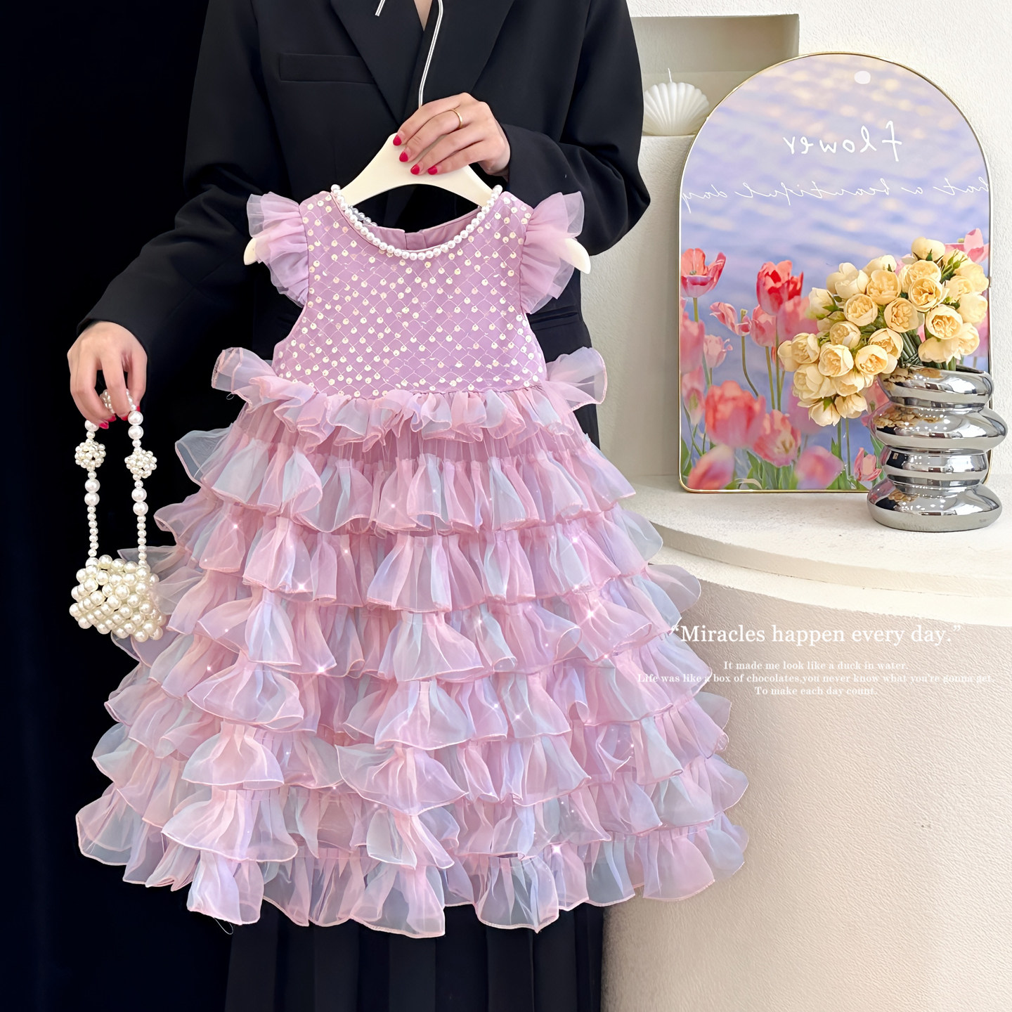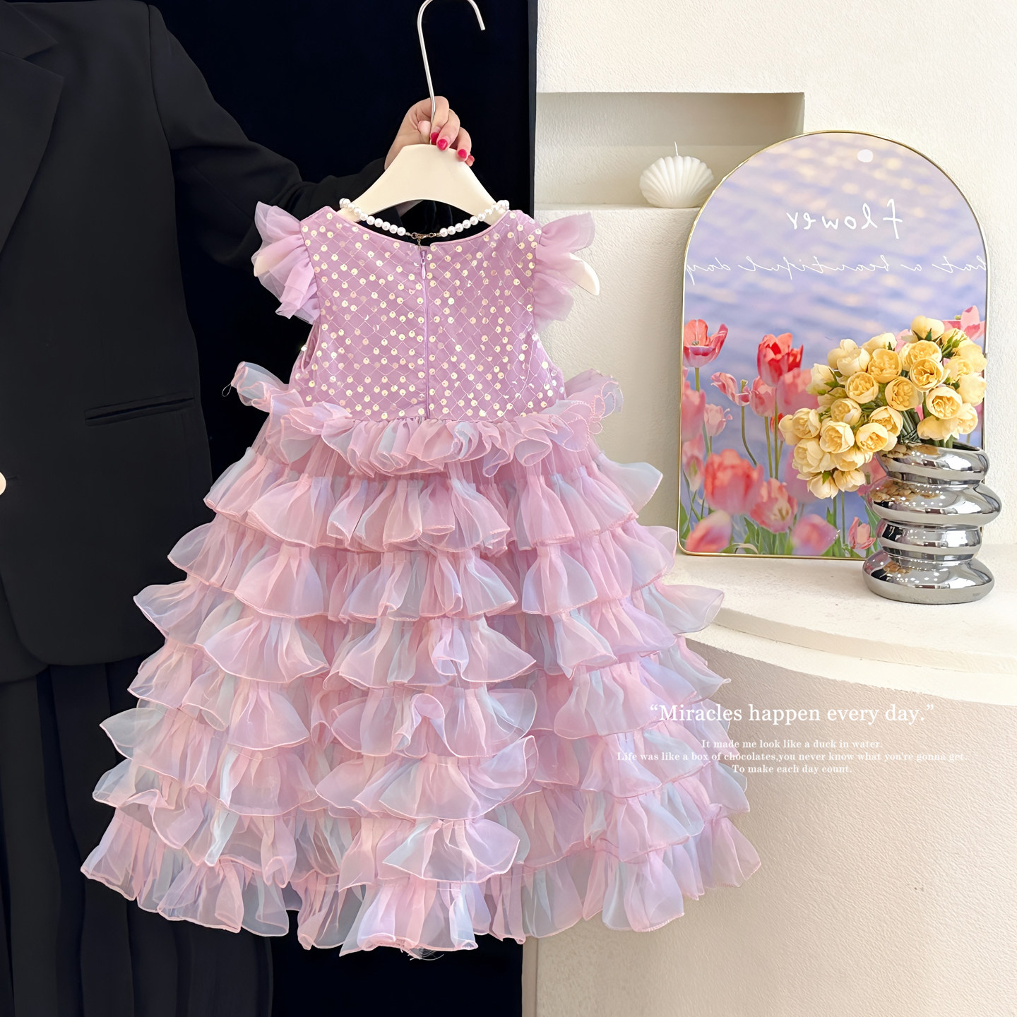 女童连衣裙夏季2025新款儿童亮片公主裙小女孩洋气生日礼服蛋糕裙