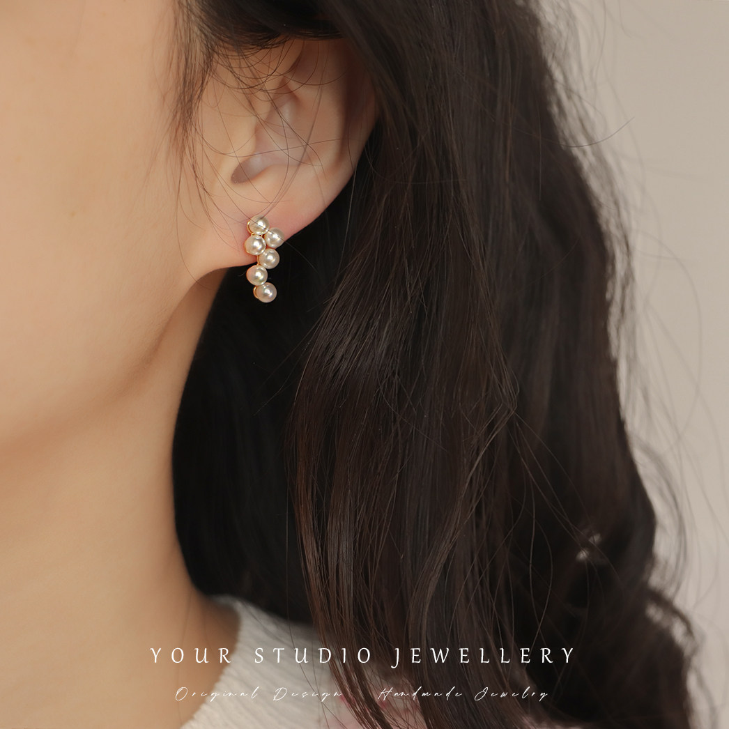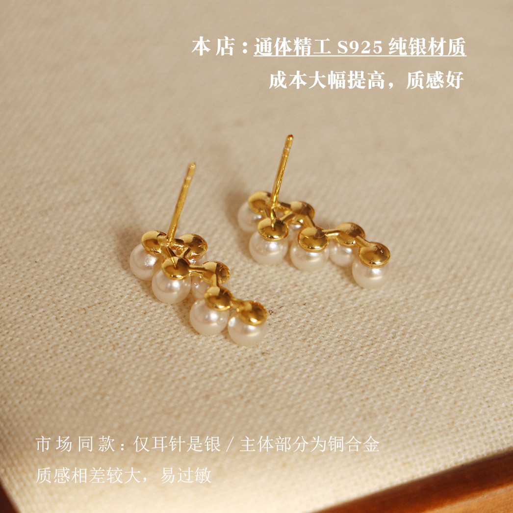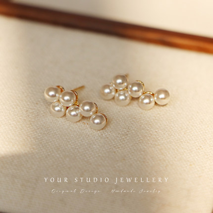 小葡萄串 通体纯银S925超亮珍珠耳钉正品高级感日系气质礼物女