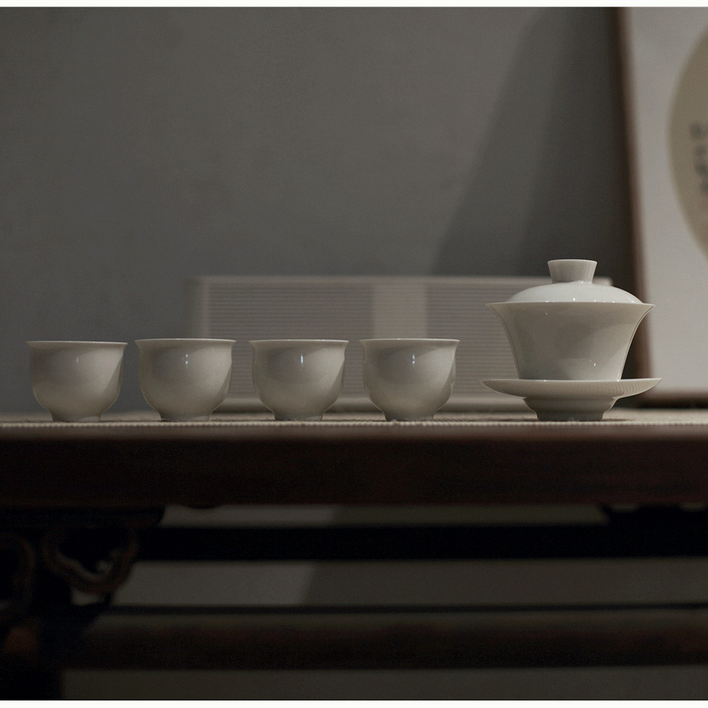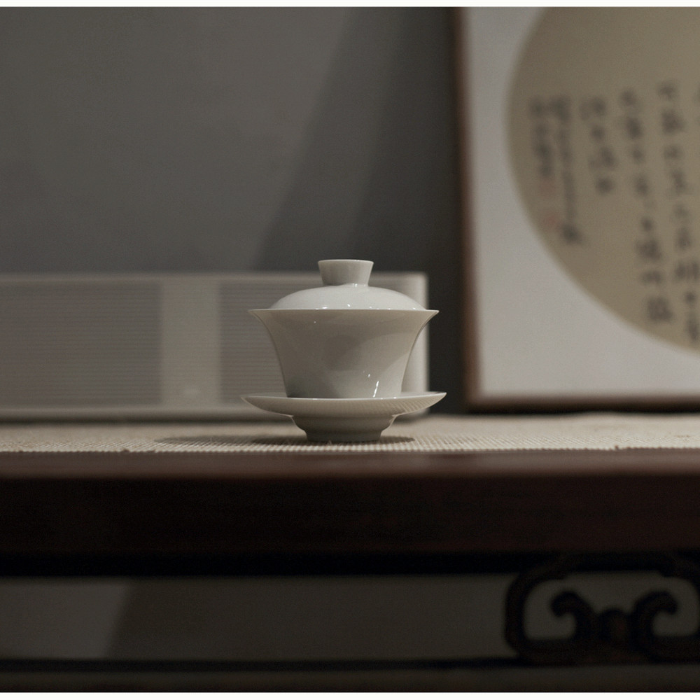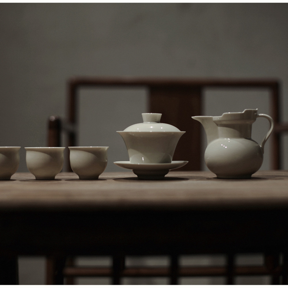 |亦宋书院|《草木灰》凝脂三才盖碗 有拖 浅式茶具 公道杯 整套