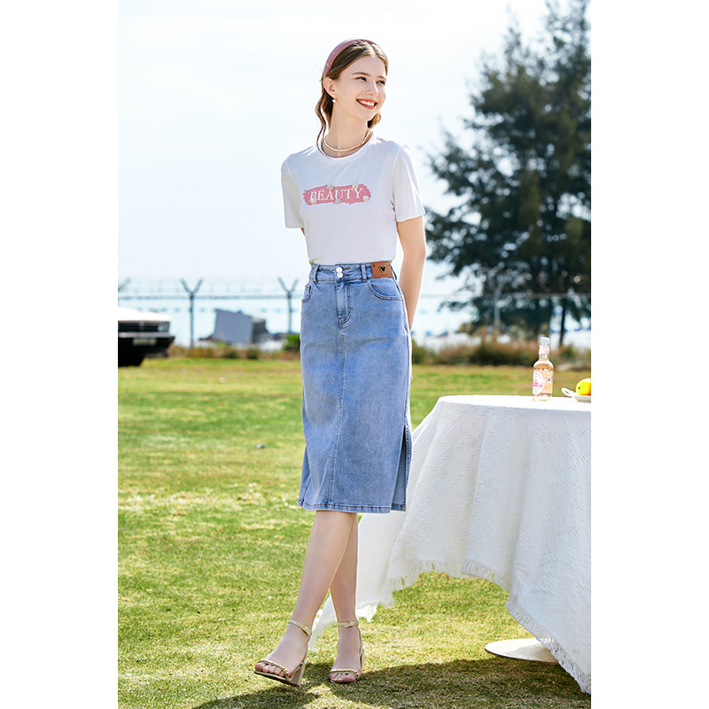 betu百图女装夏季新款高腰小个子开叉A字短裙牛仔半身裙子