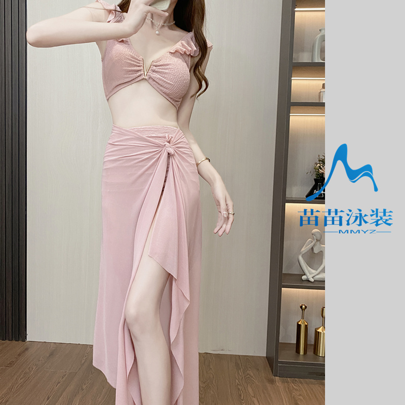 bikini比基尼性感游泳衣女分体三件套韩国温泉度假沙滩粉系泳装女