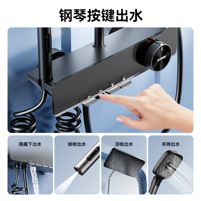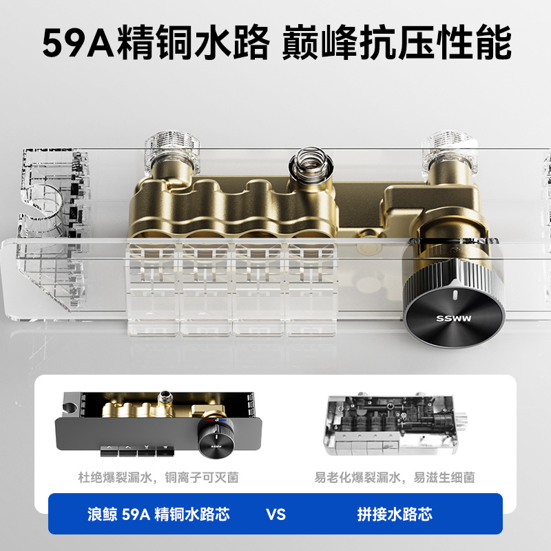 浪鲸淋浴花洒套装家用卫浴增压枪灰全铜浴室卫生间洗澡花洒多功能