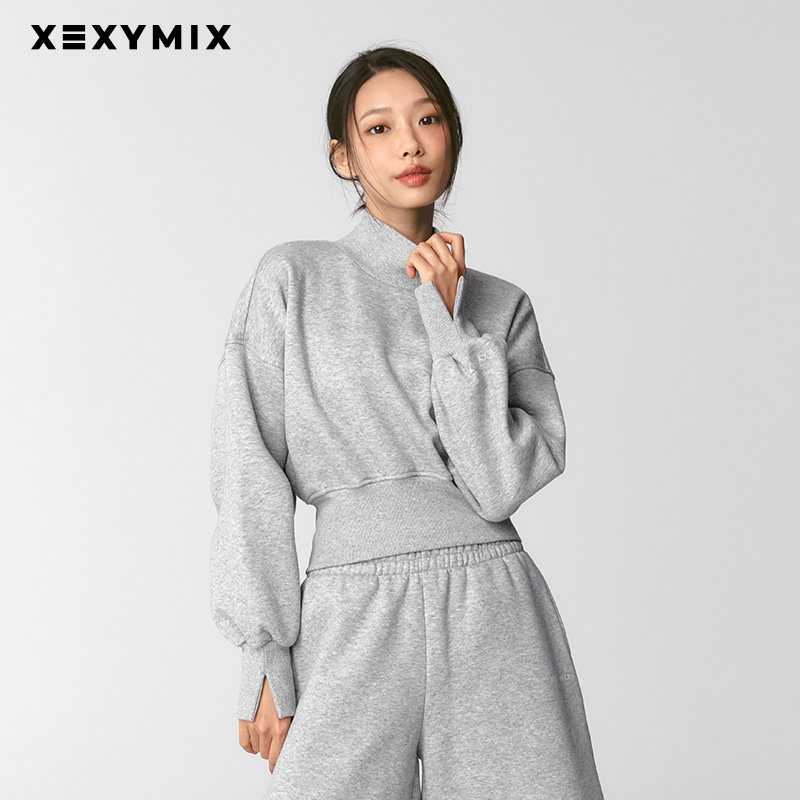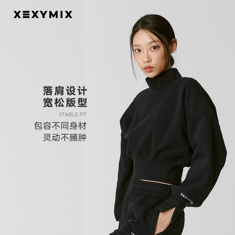 xexymix杰克茜女高领净色拉绒套头卫衣宽松春秋保暖韩版XTFMT12J3