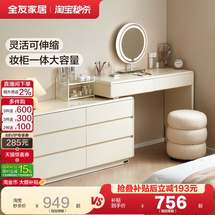 全友家居现代简约六斗柜梳妆台一体卧室家用伸缩转角化妆桌书桌