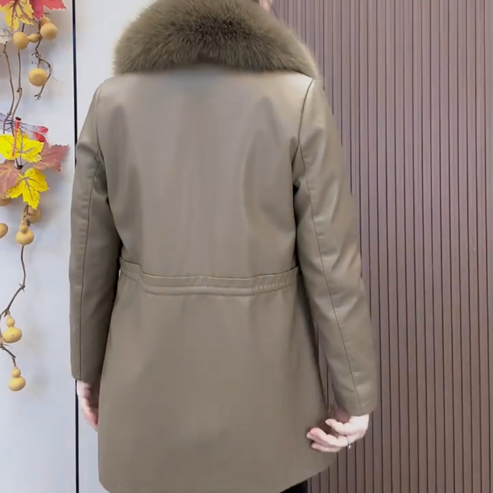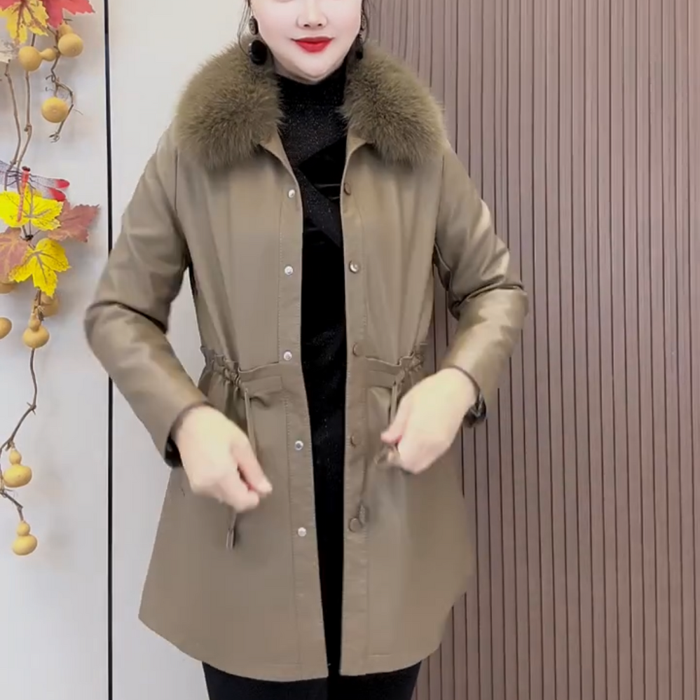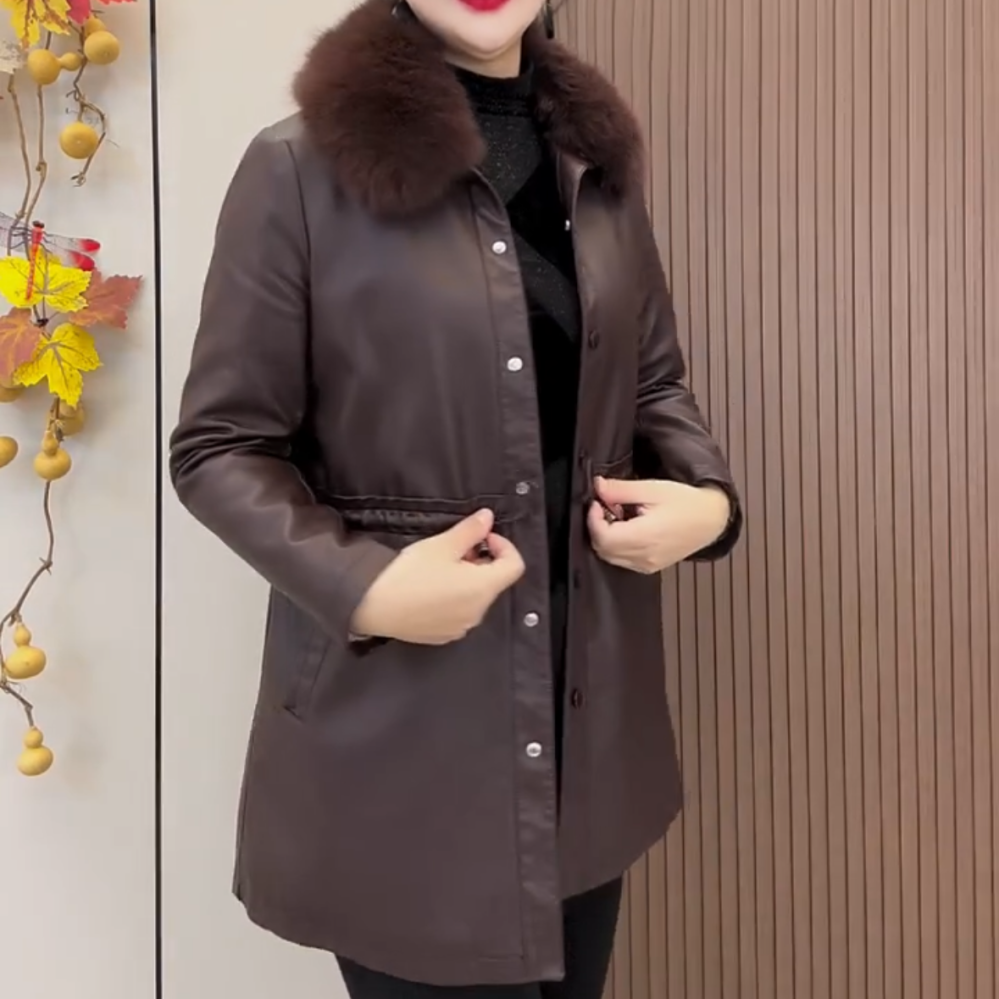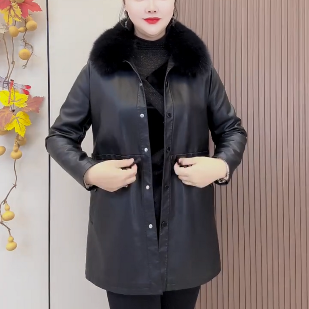 PU皮衣外套女2025年新款洋气妈妈中长款冬季时尚中年加绒加厚夹克