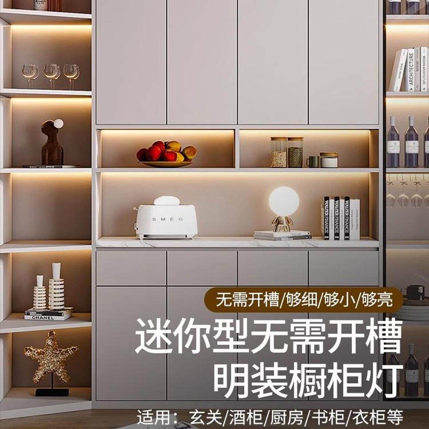 橱柜灯带免开槽人体感应衣柜鞋柜1616弧形酒柜灯led层板灯线条灯