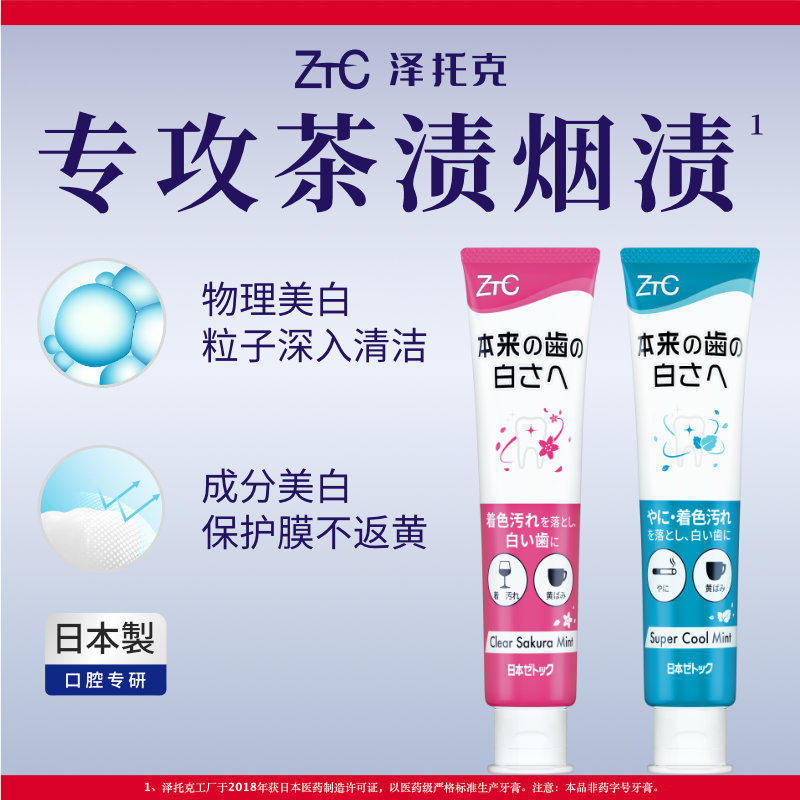 泽托克美白牙膏家庭装含氟防蛀清洁口腔去烟渍专用日本官方正品