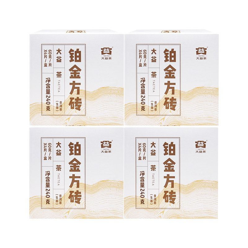 【顺丰包邮】大益普洱茶铂金方砖生茶2021年云南茶叶60g*4砖/盒装