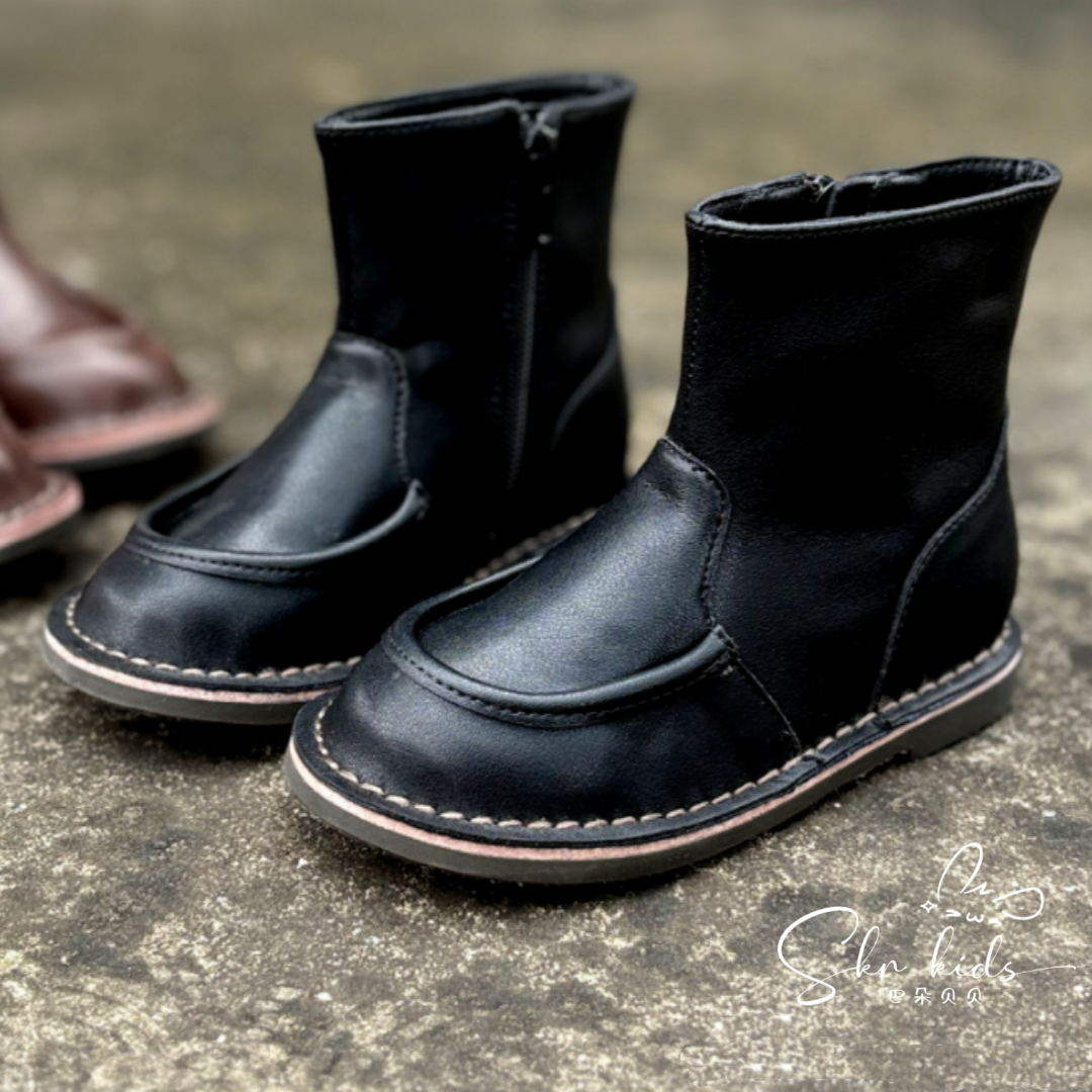 意大利pepe同款男女童牛皮短靴
